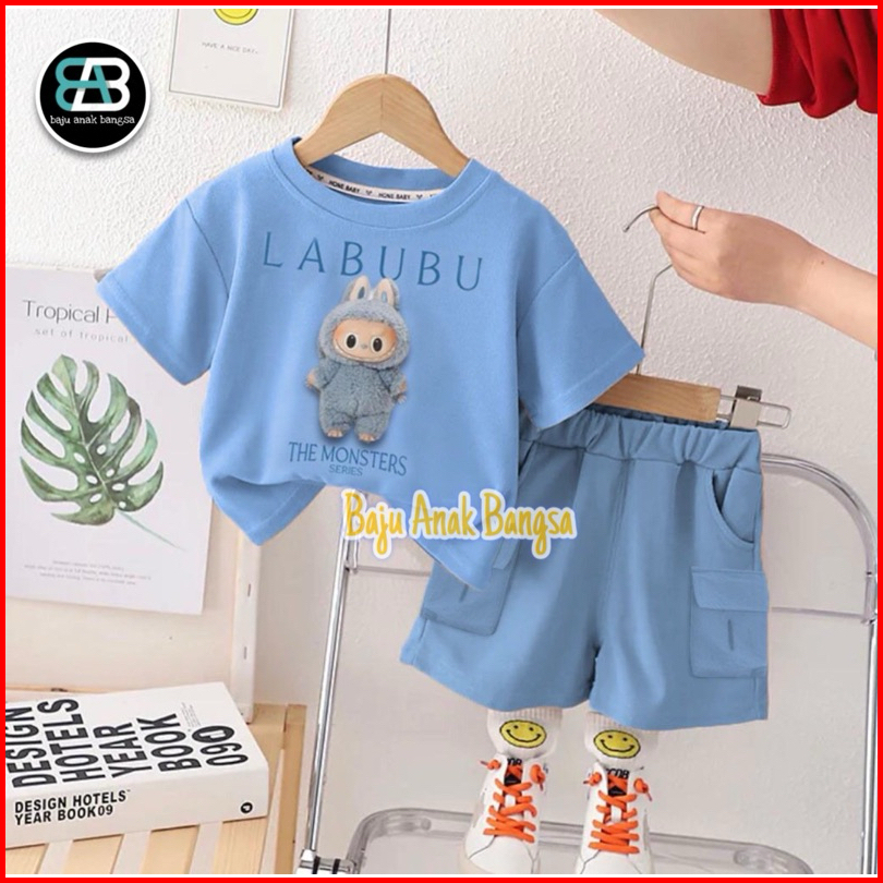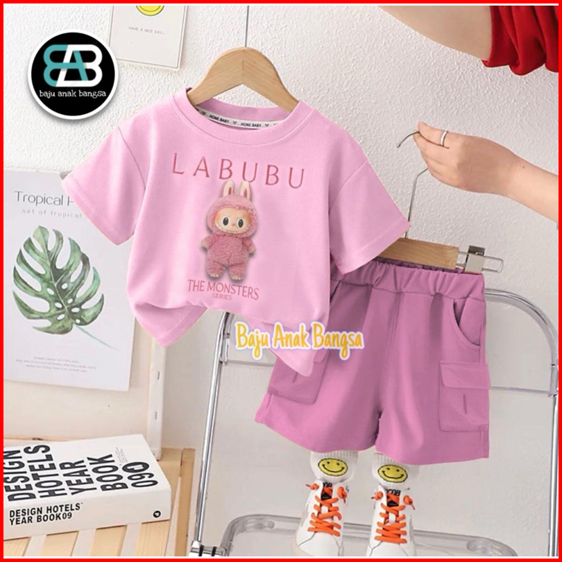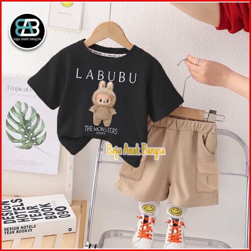 Setelan Anak 1-5 Tahun Monsters Labubu Setelan Anak Celana Pendek Pakaian Anak Unisex Baju Celana Cargo Anak Baju Anak B