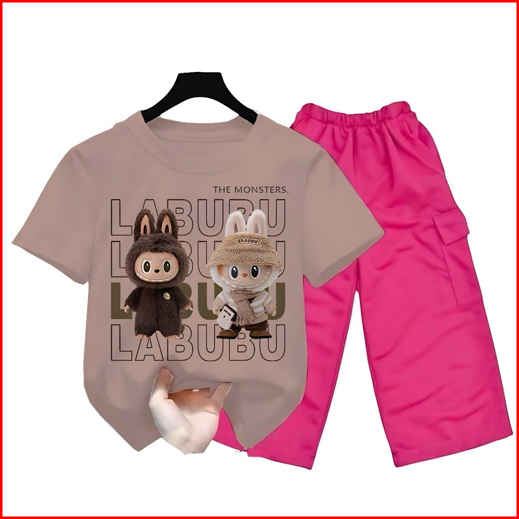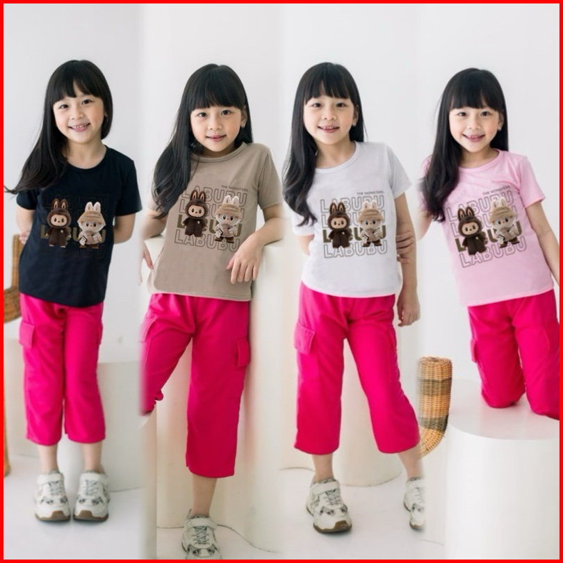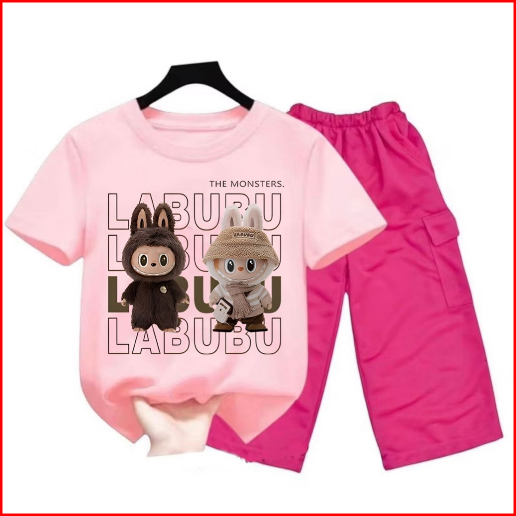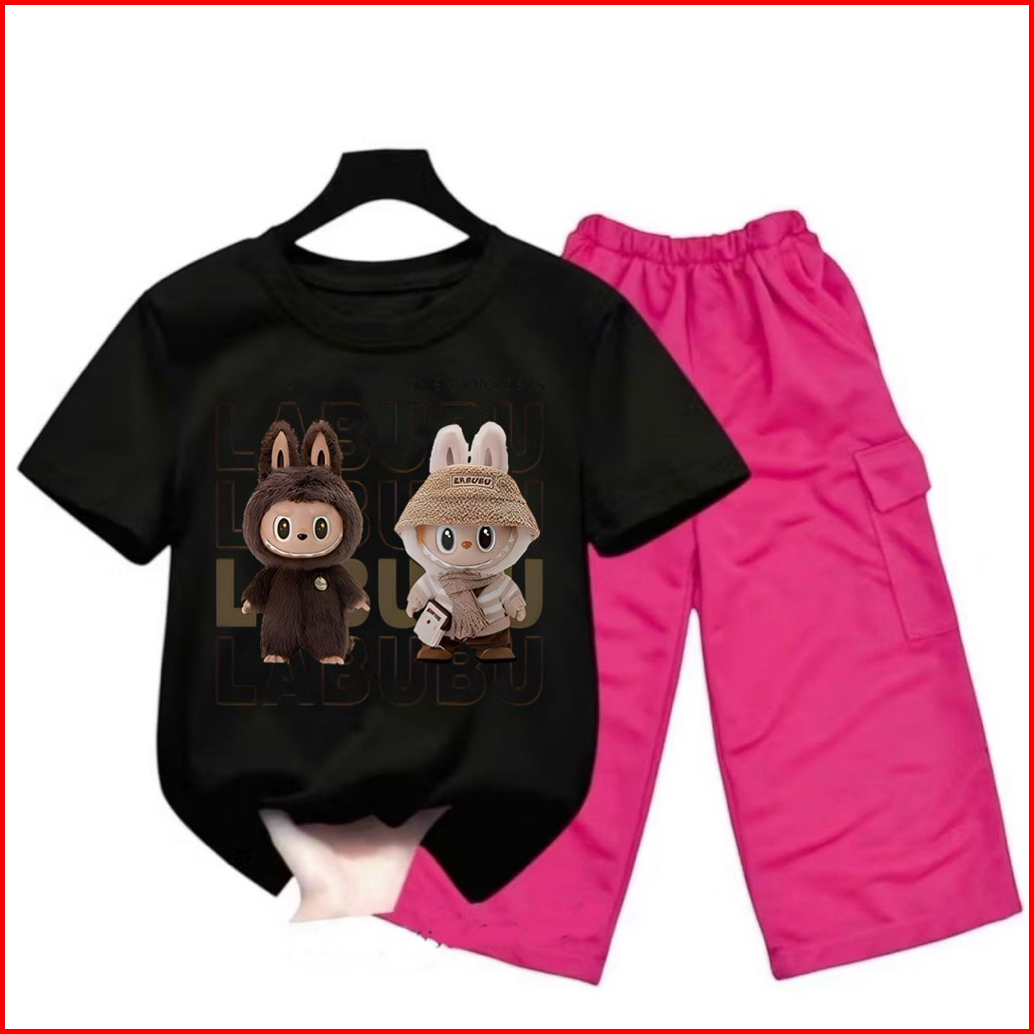 Setelan Celana Cargo Baju Labubu Anak Perempuan Umur 3-10 Tahun