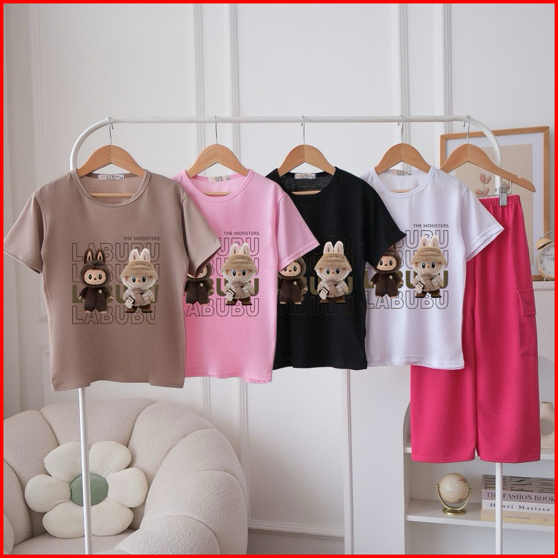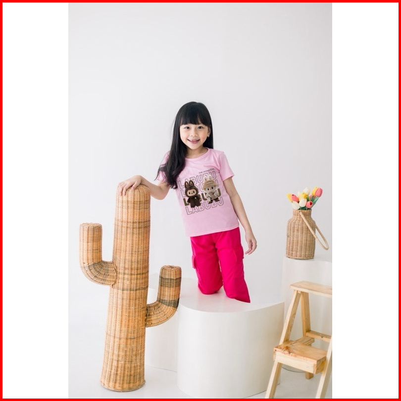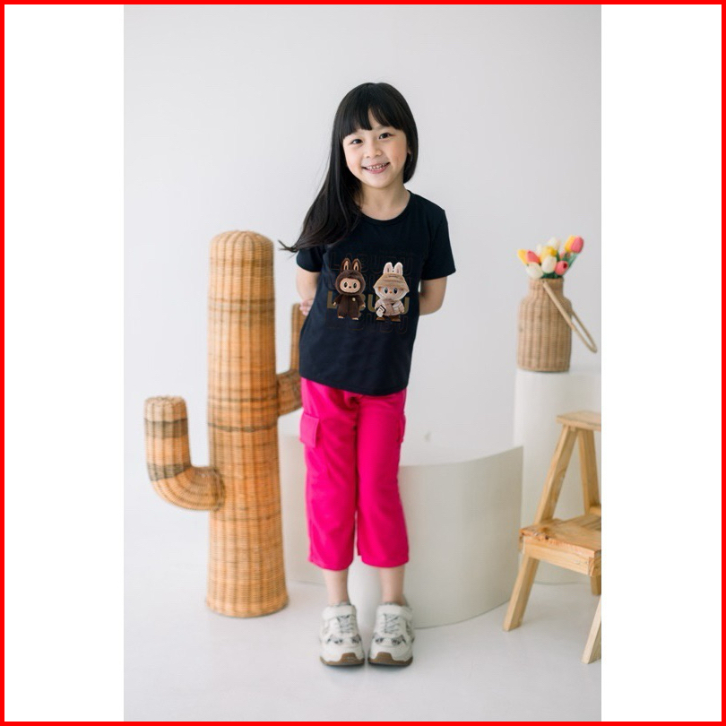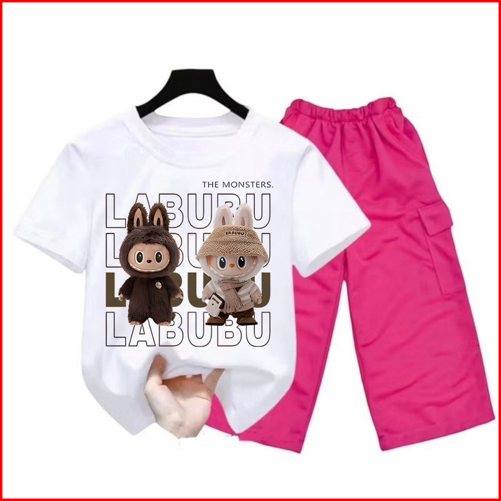 Setelan Celana Cargo Baju Labubu Anak Perempuan Umur 3-10 Tahun