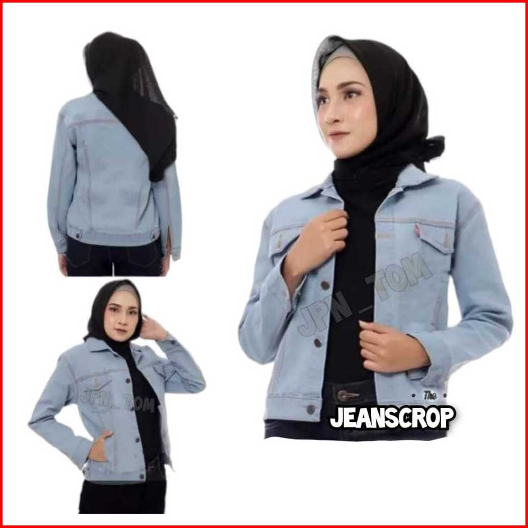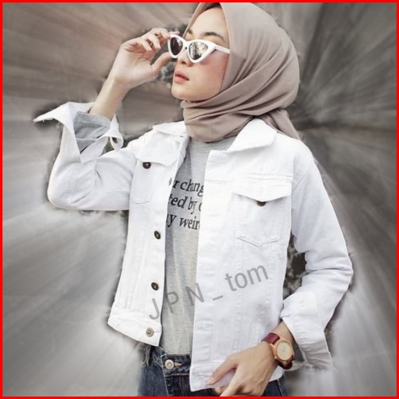 Jaket Jeans Putih Wanita Crop Polos Jacket Denim Cewek Jins Tebal White Slimfit Croptee Bodyfit