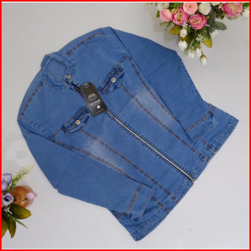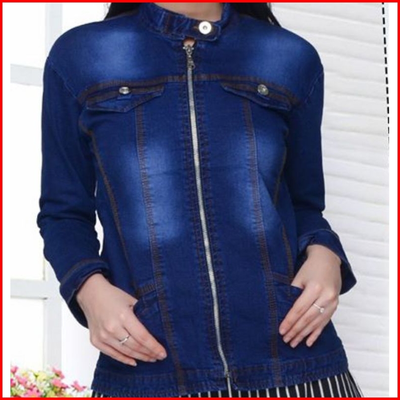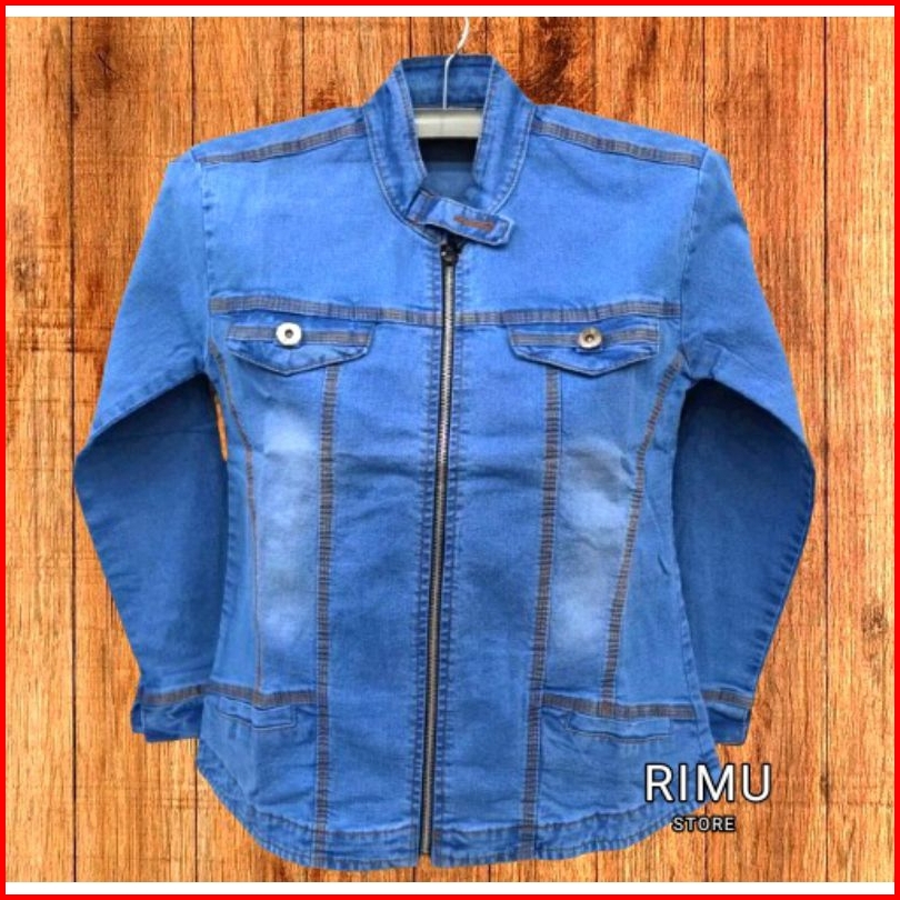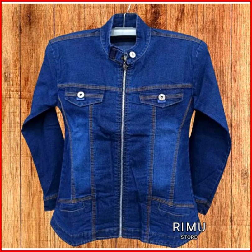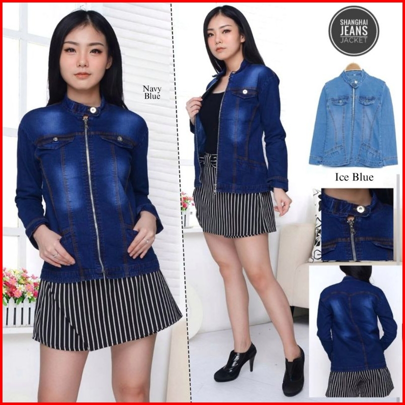 Jaket Jeans Sleting Wanita Model Kerah Shanghai