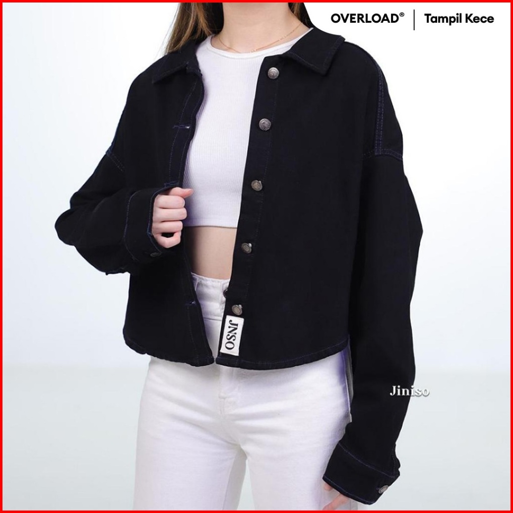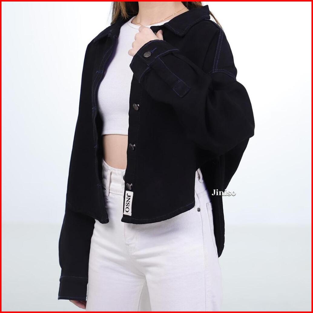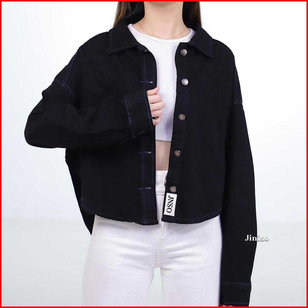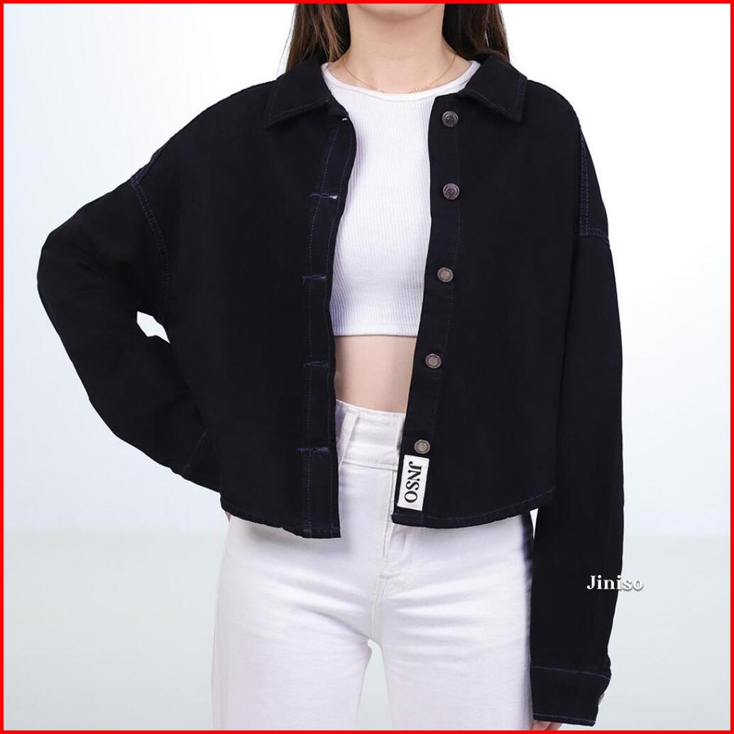 Jiniso Jaket Crop Jeans Oversize Belle Basic Black Blue