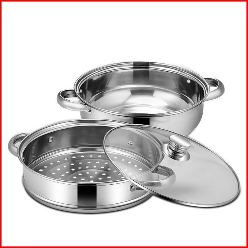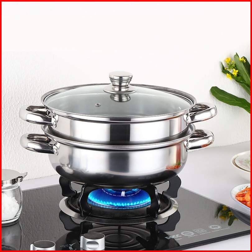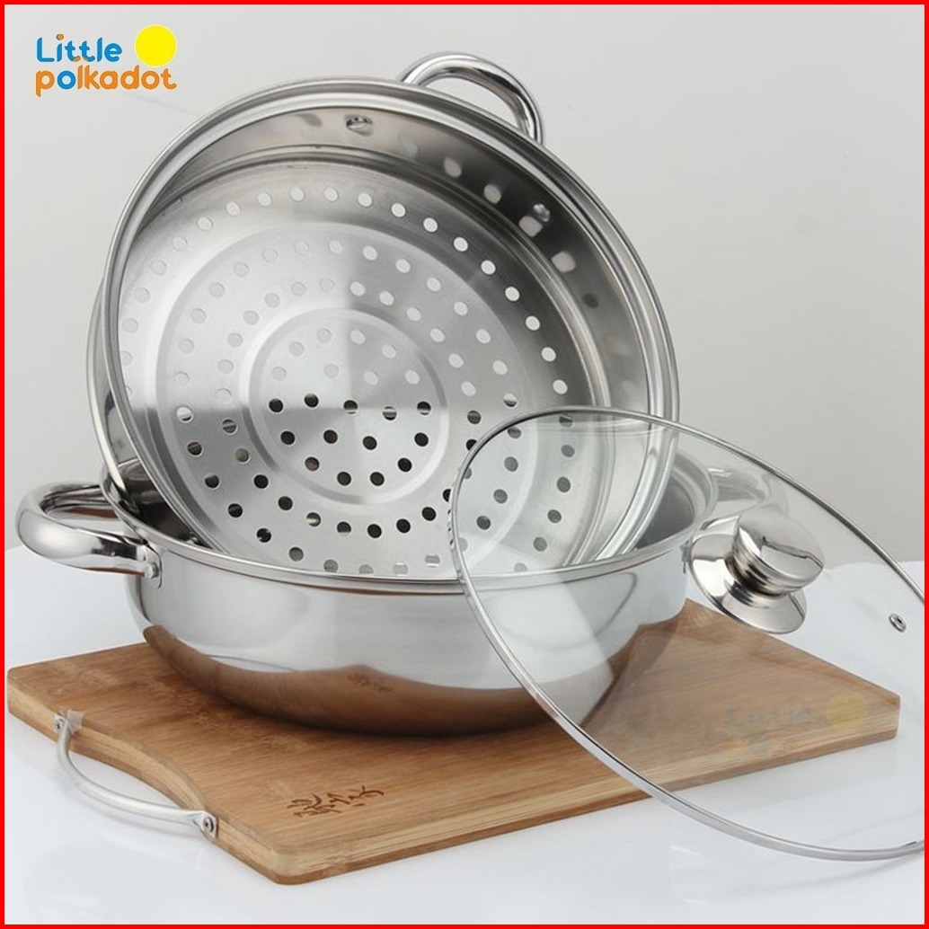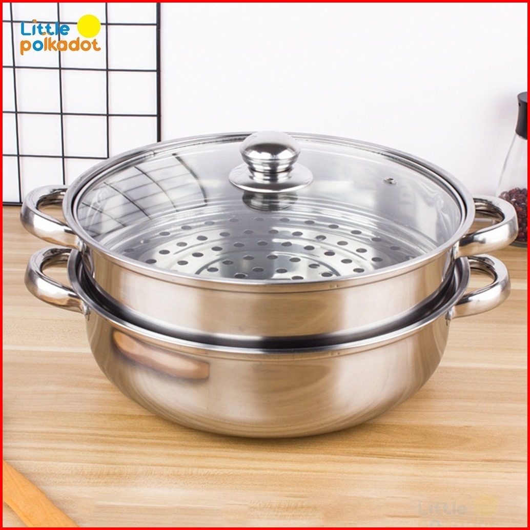 Alat Pengukus 2 Layer Panci Kukusan Stainless Steel Tutup Kaca 28cm Steamer