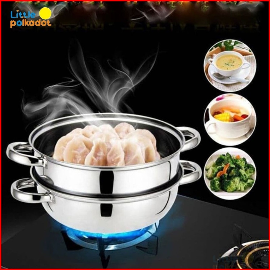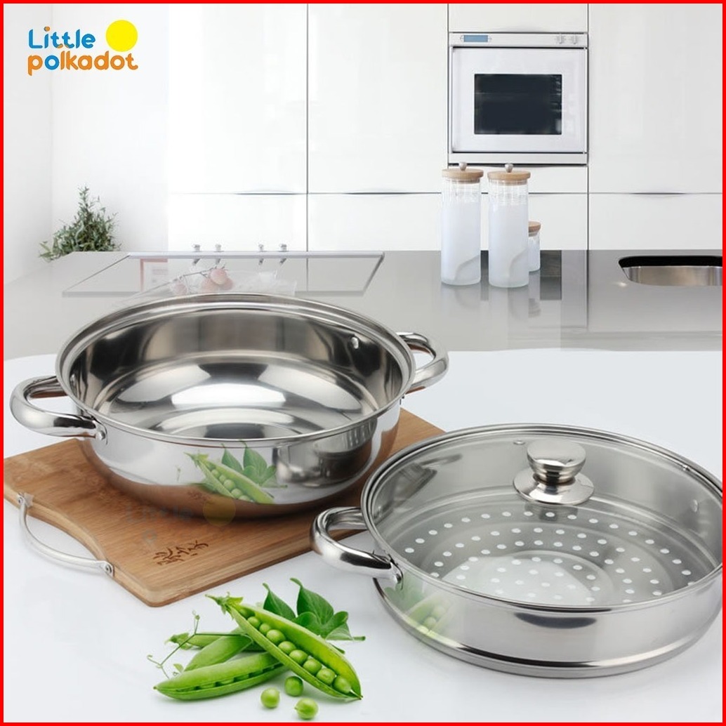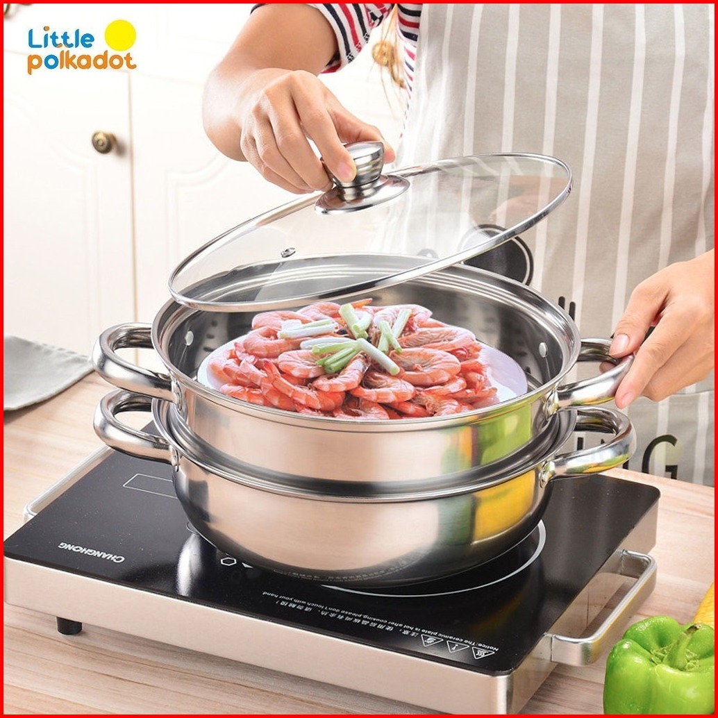 Alat Pengukus 2 Layer Panci Kukusan Stainless Steel Tutup Kaca 28cm Steamer