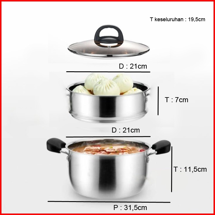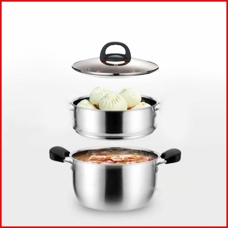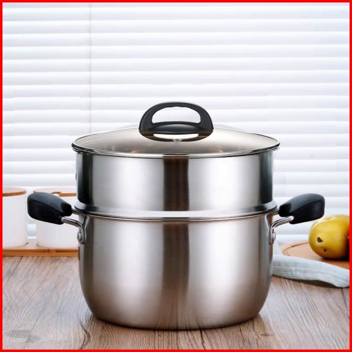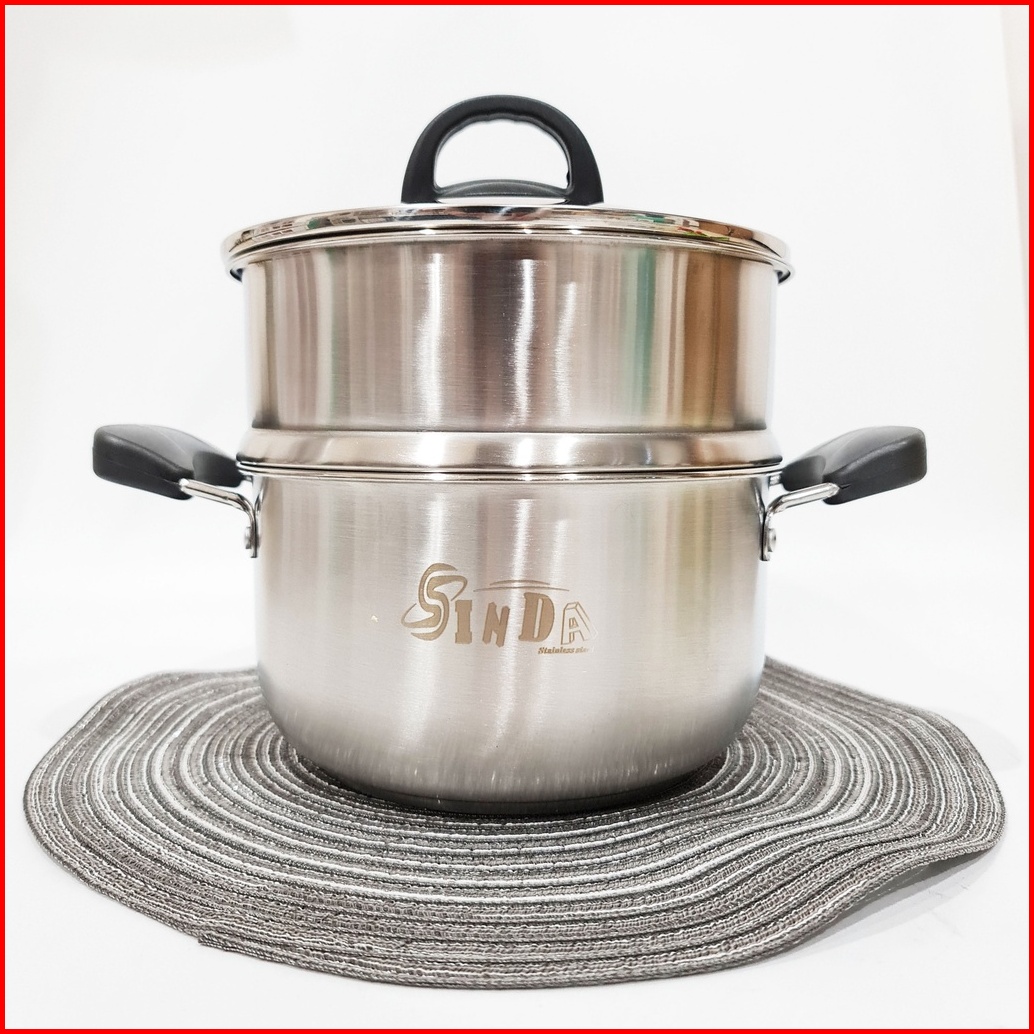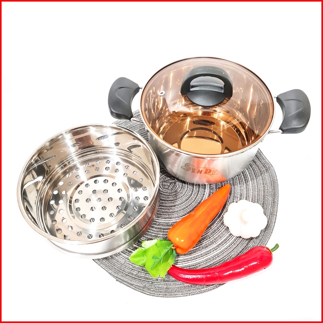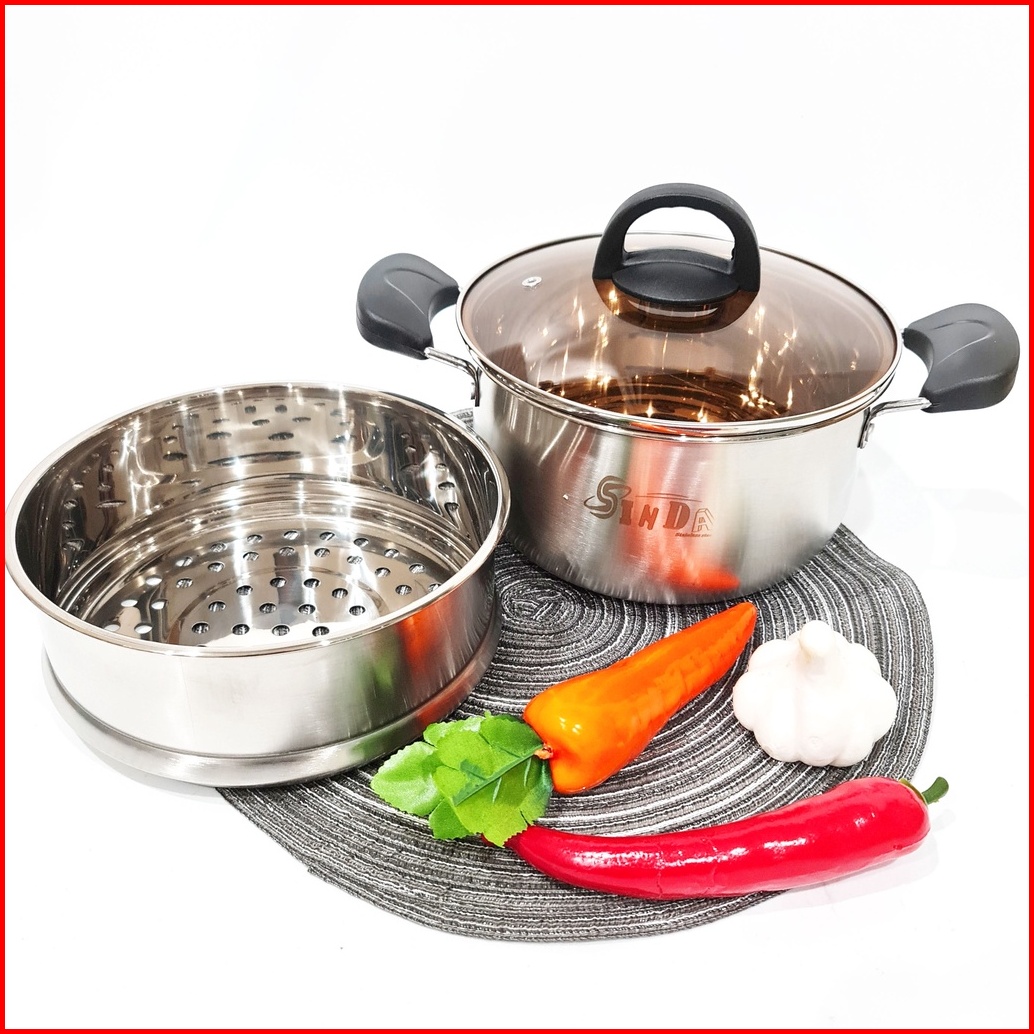 Panci Kukusan Steamer Pot Sinda Panci Steamer Tebal Tutup Kaca Panci Kukus Susun 2