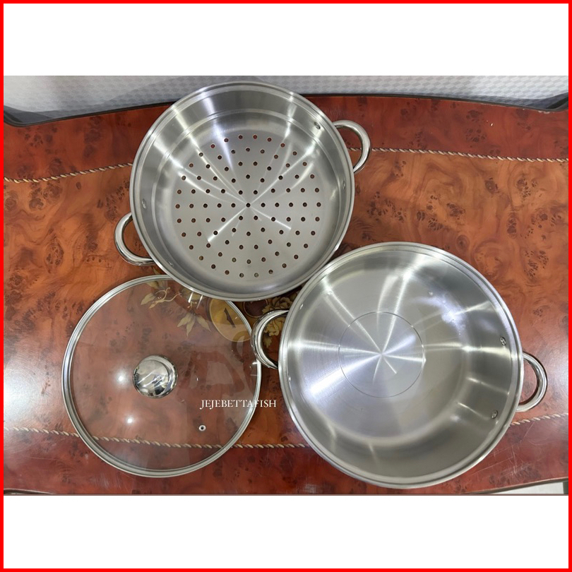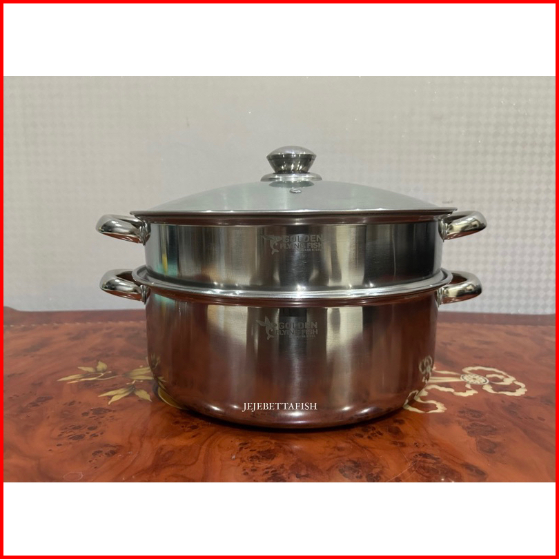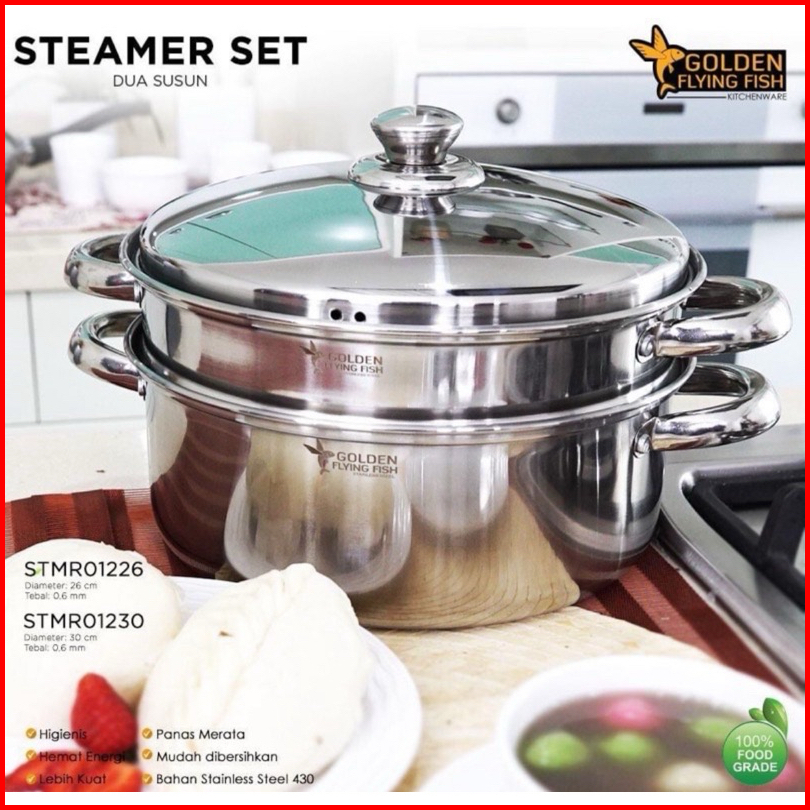 Golden Flying Fish - Steamer Set 2 Susun 26cm 30cm - Stainless Steel - Panci Kukusan Tingkat