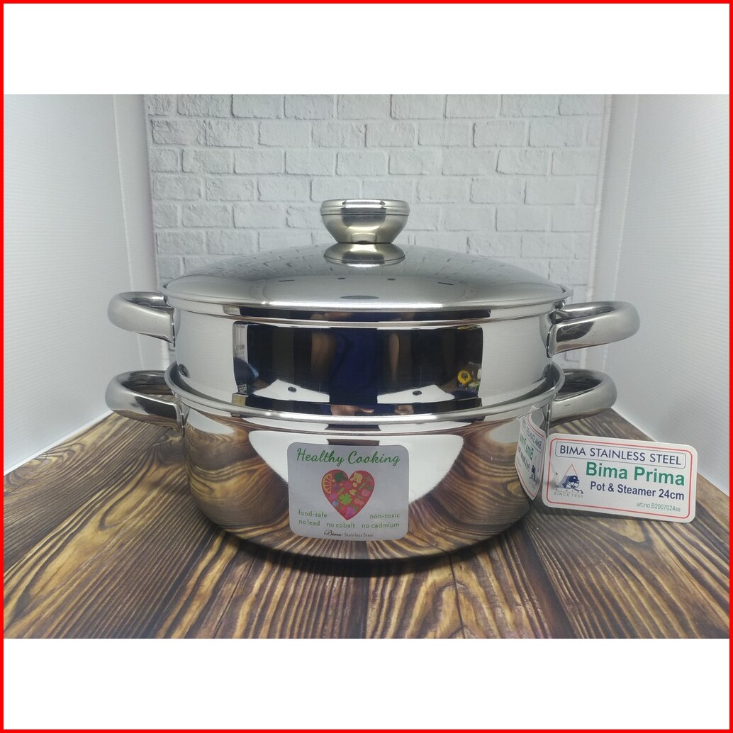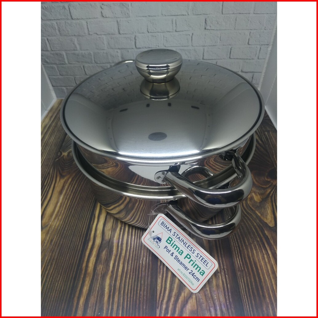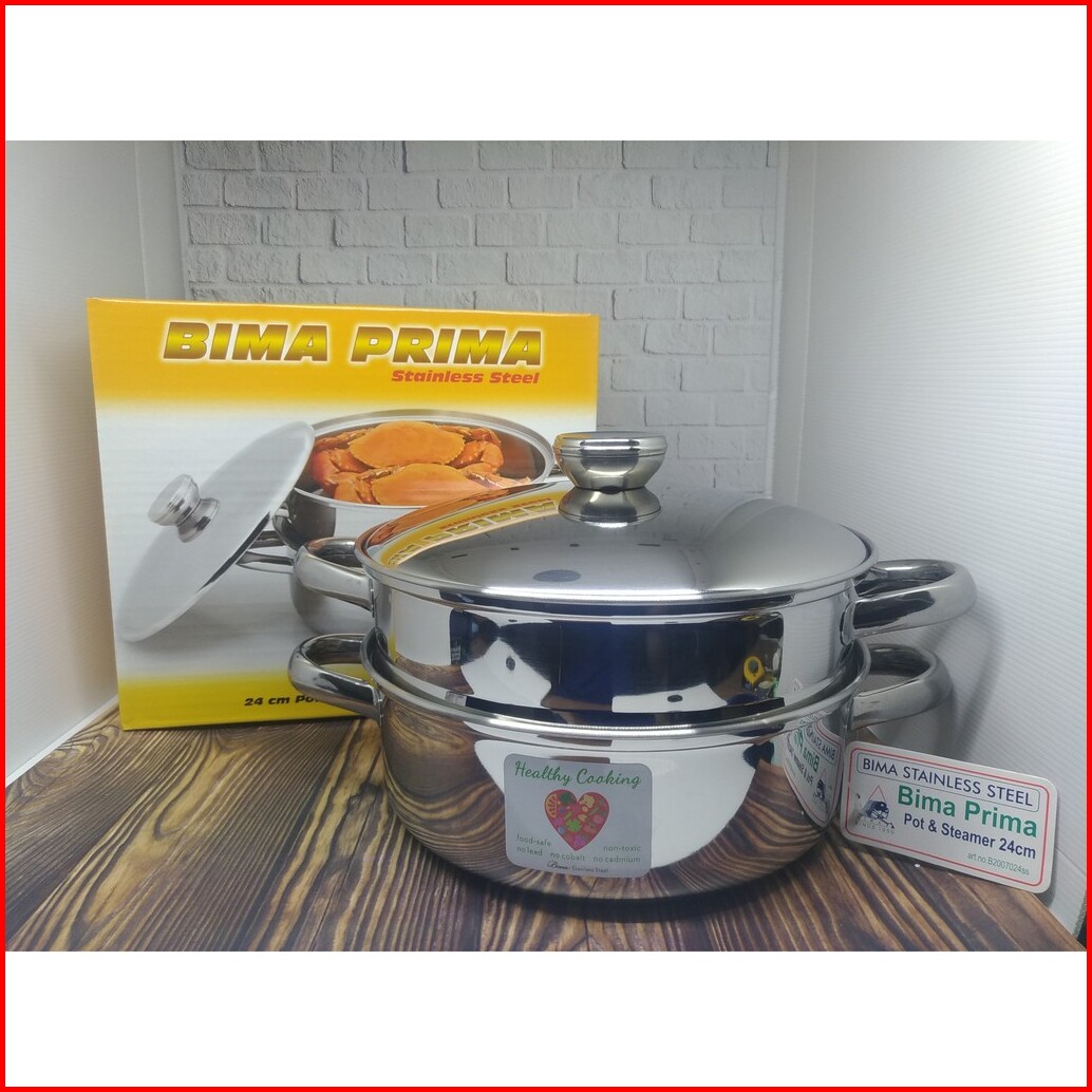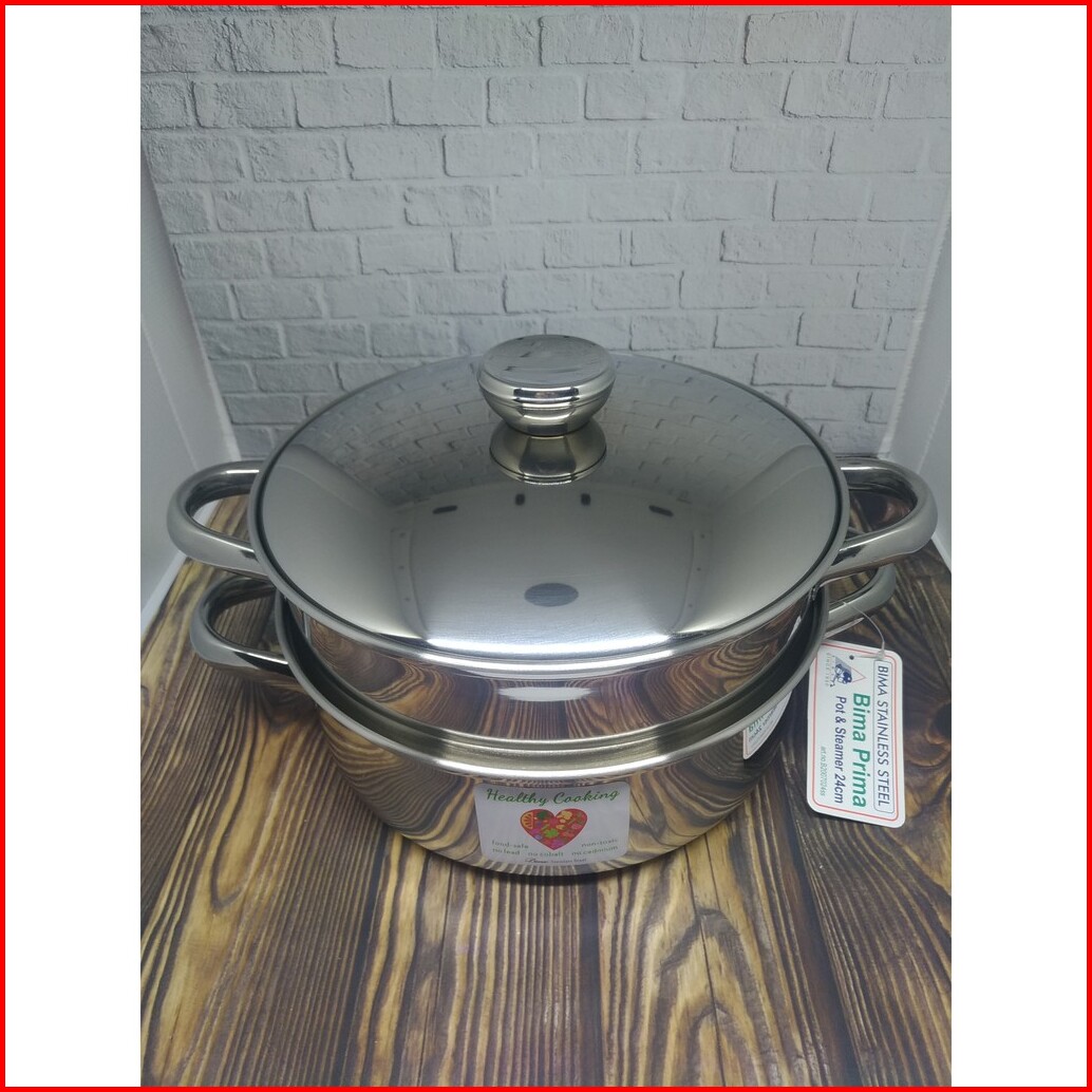 Bima Prima Panci Steamer Kukusan 2 Susun 24 Cm Kompor Induksi Listrik Stainless Steel Kukus Nasi