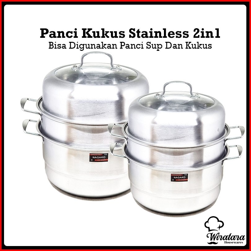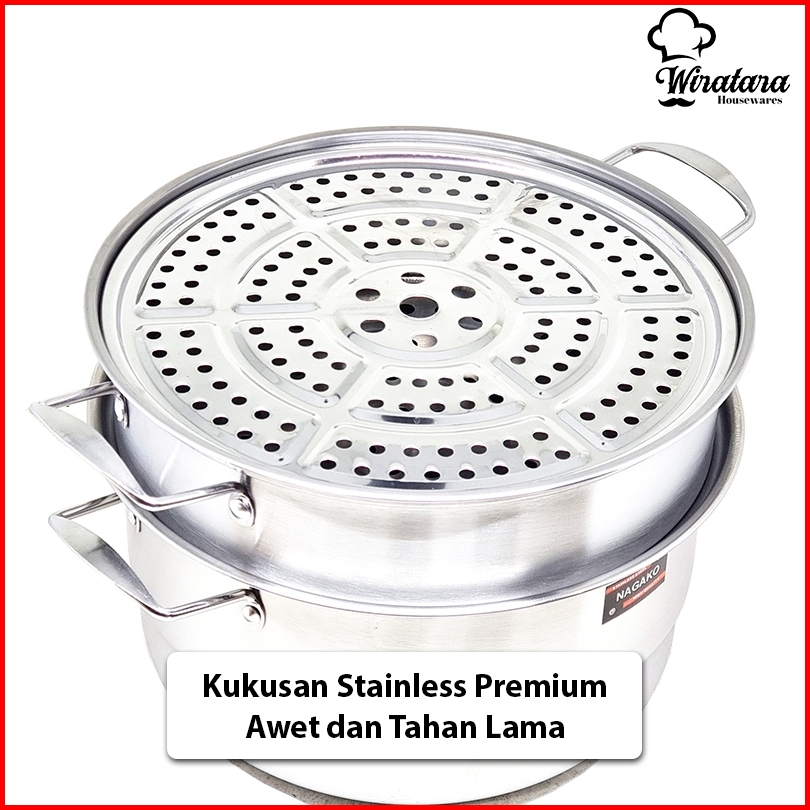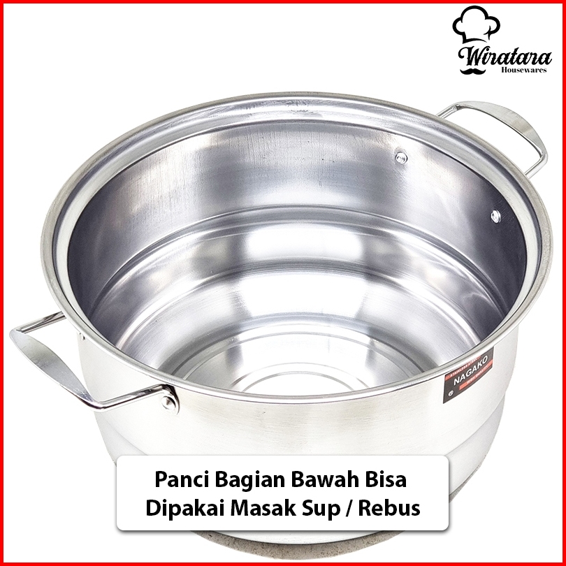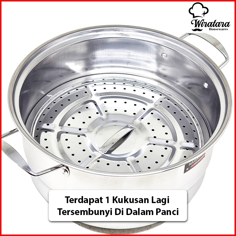 Nagako Panci Kukus 3 Tingkat Steamer Stainless 28cm 30cm Kukusan Stenlis Besar Dandang