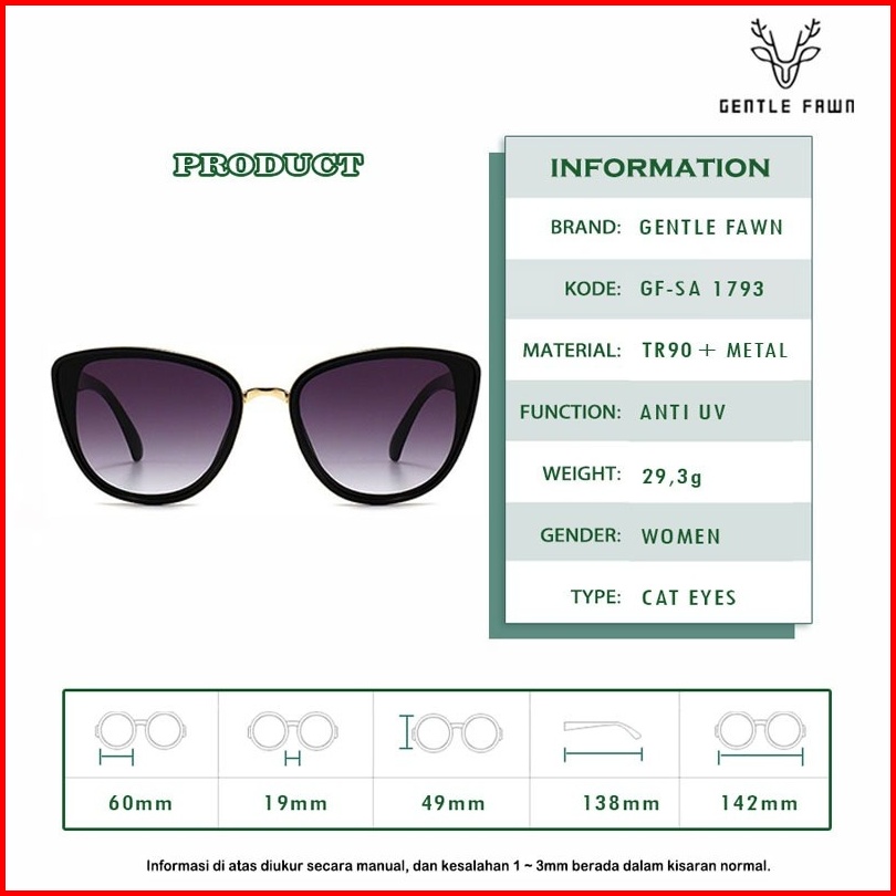 Gentle Fawn Kacamata Sunglasses Anti Radiasi Uv Model Cat Eye Terbaru Bahan Kuat Dan Nyaman Fashion Wanita Terkini 1793