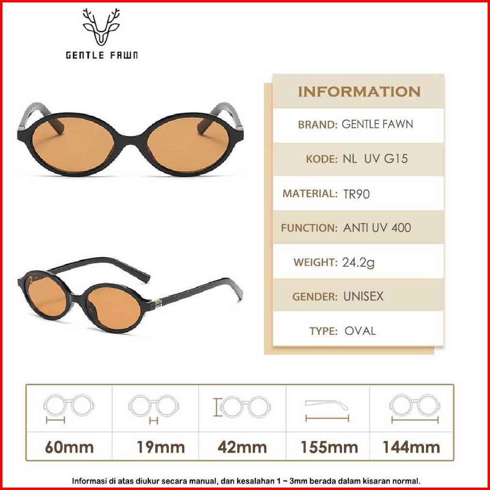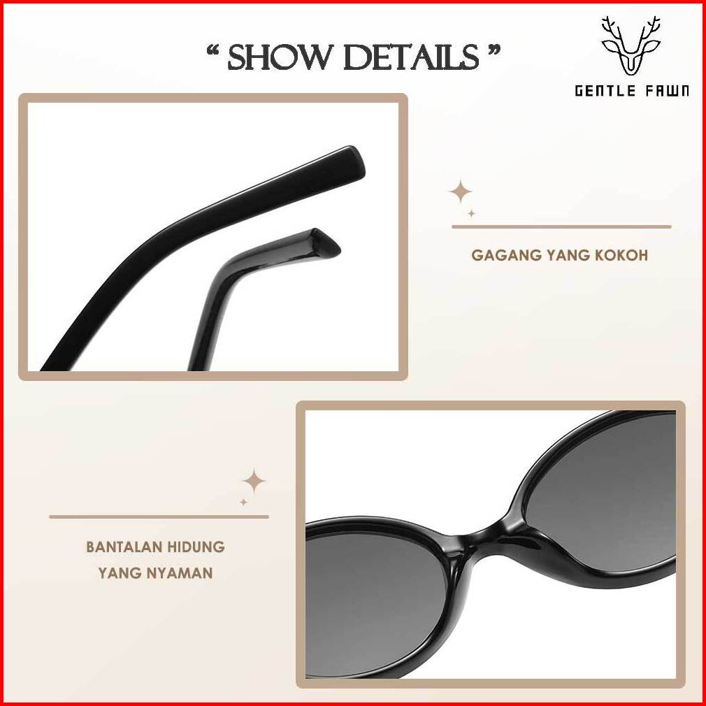 Gentle Fawn Kacamata Sunglasses Anti Uv 400 Protection Fashion Wanita Bentuk Oval Trendy Lensa Hitam Anti Silau G15