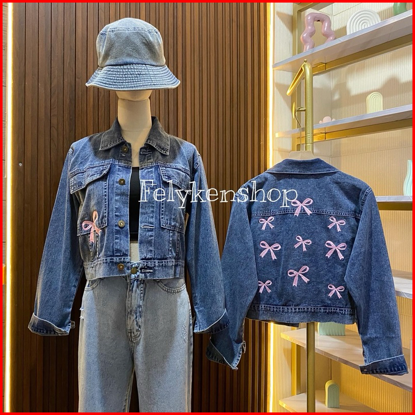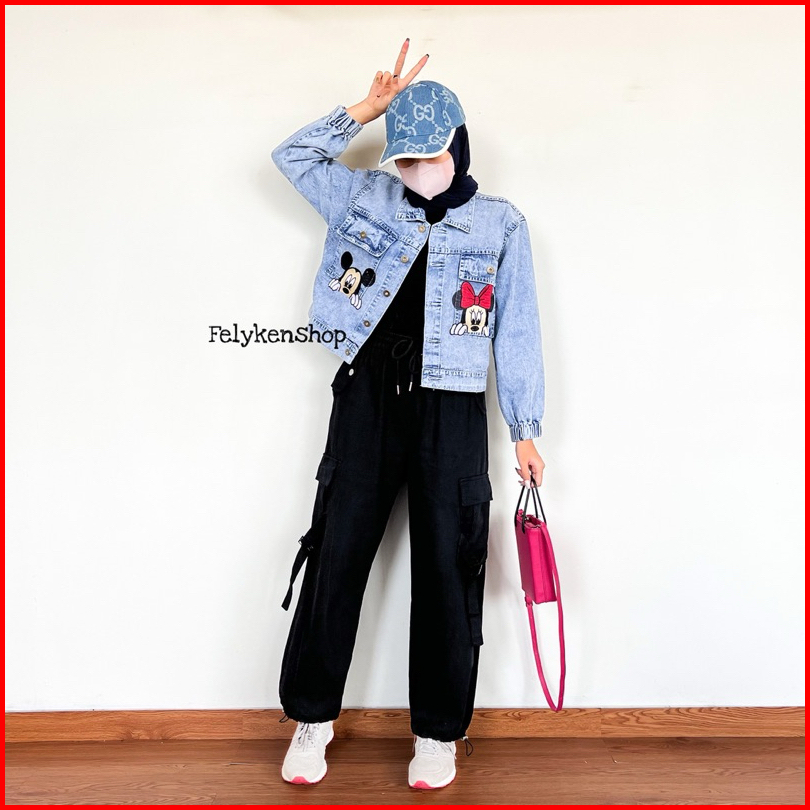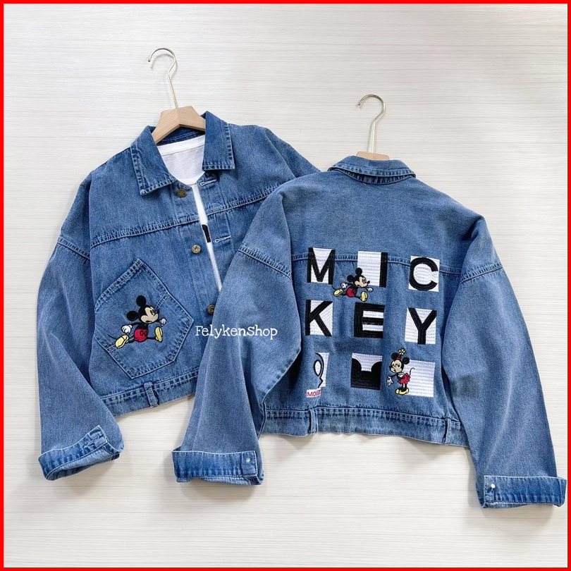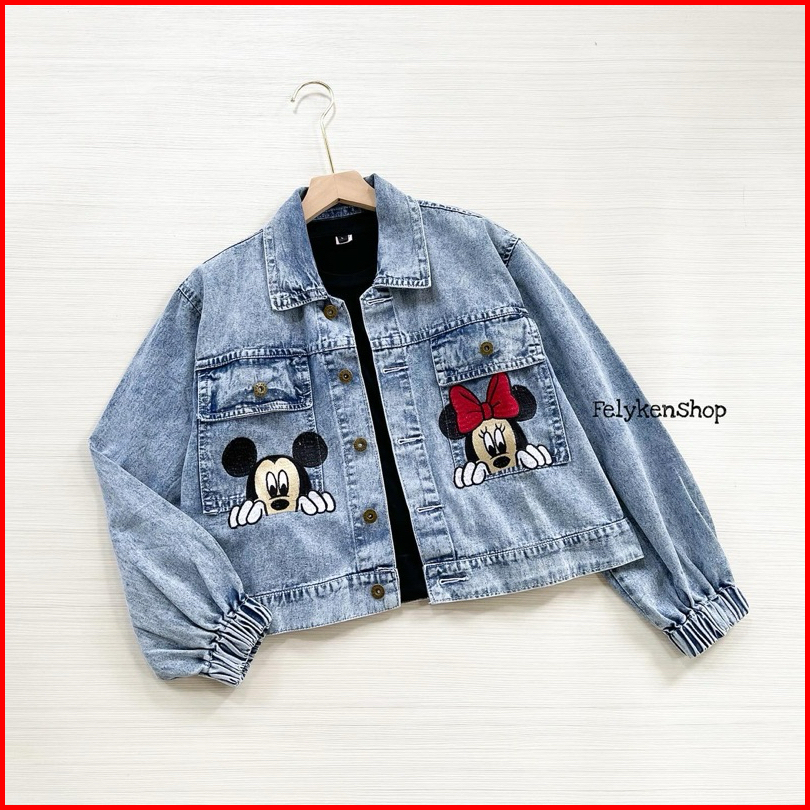 Jaket Jeans Crop Bordir Kode Mb 904 Jaket Wanita Jaket Crop Jaket Bordir Jaket Mickey