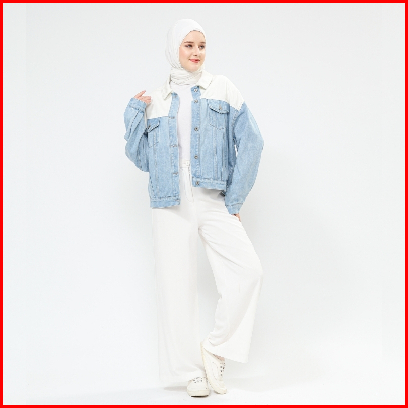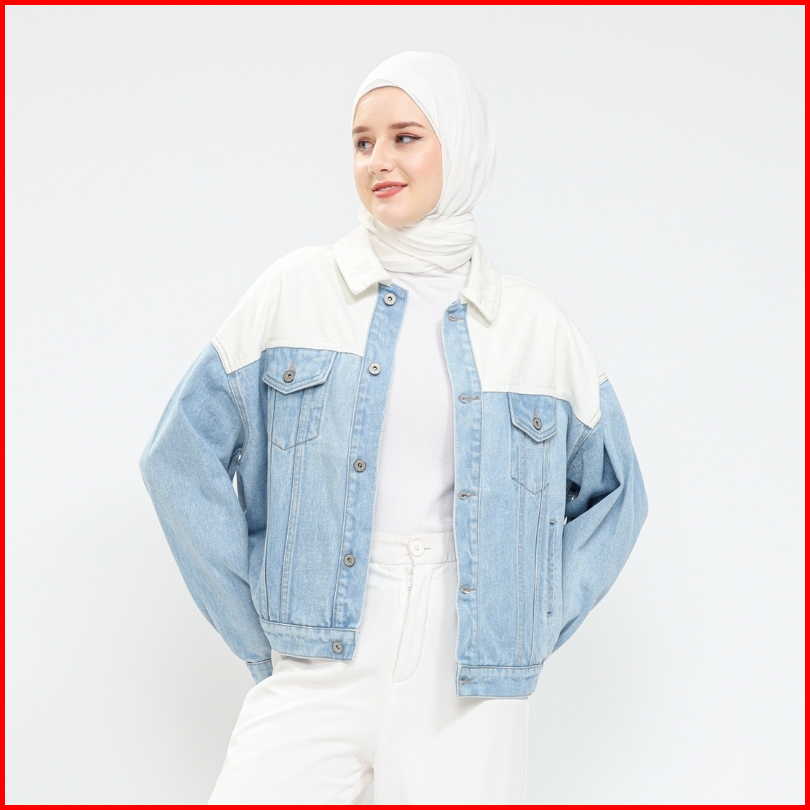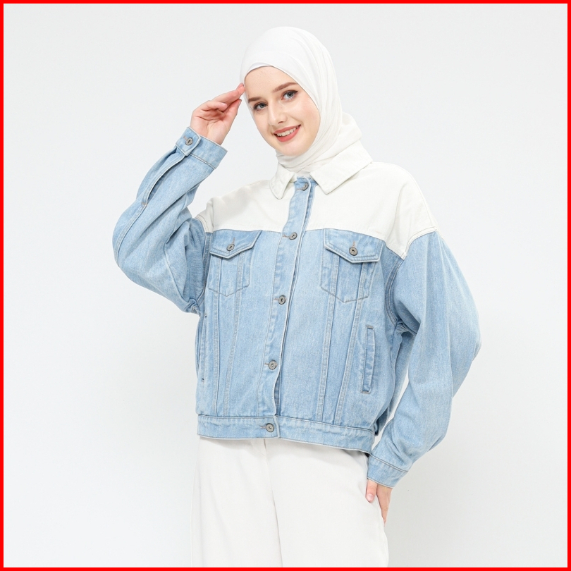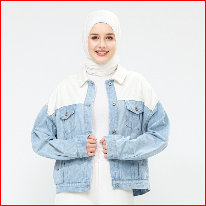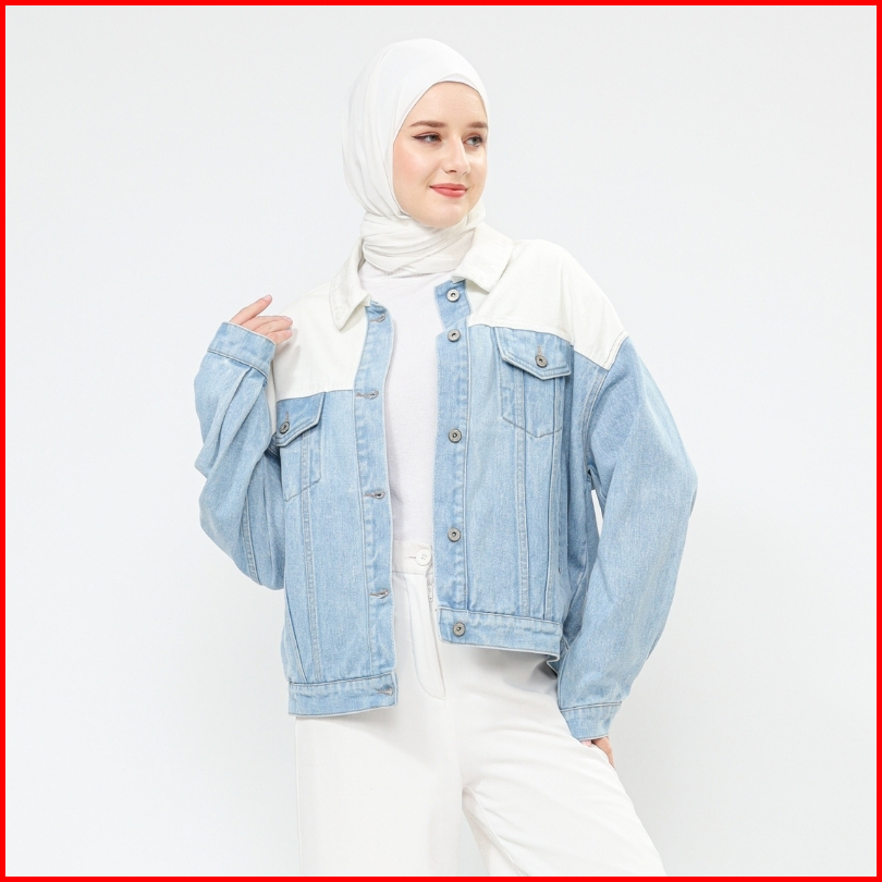 Myself - Jaket Jeans Wanita Oversize Khaki Light Blue Beatric