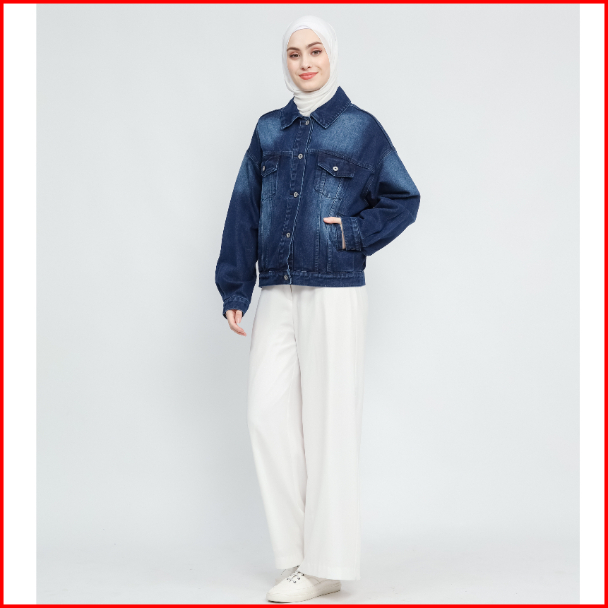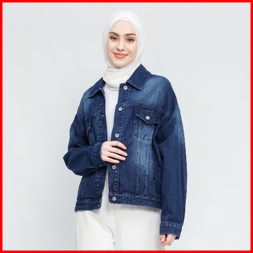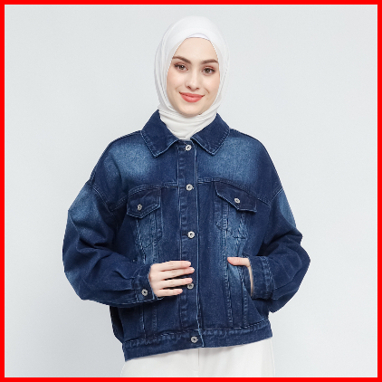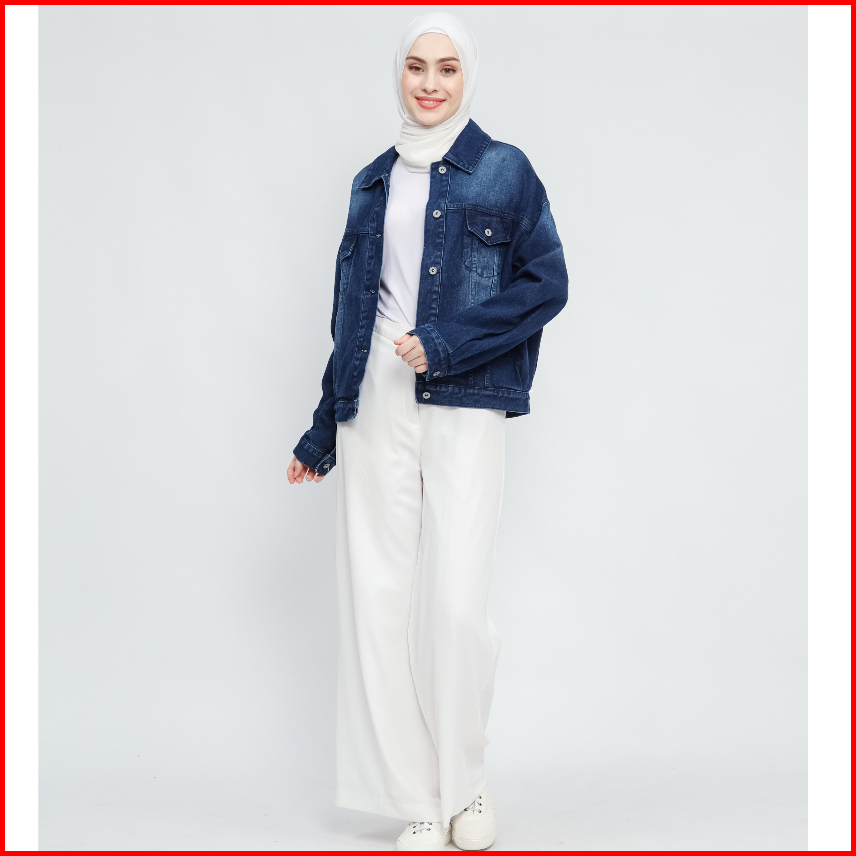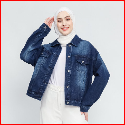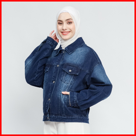 Myself Jaket Jeans Oversize Wanita Hijab Denim Spray Fiora