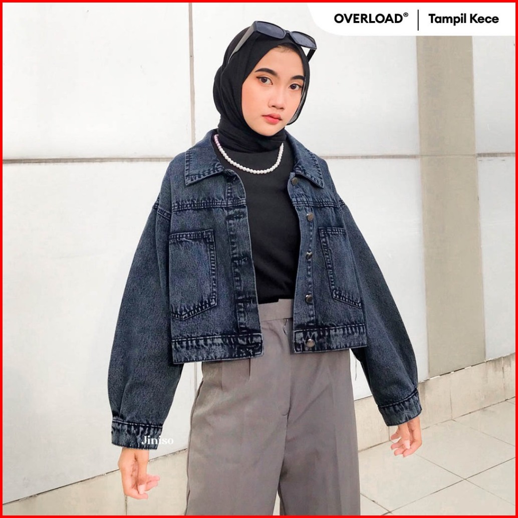 Jiniso Jaket Crop Jeans Oversize Pocket Black Acid