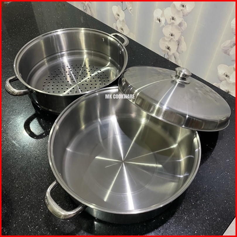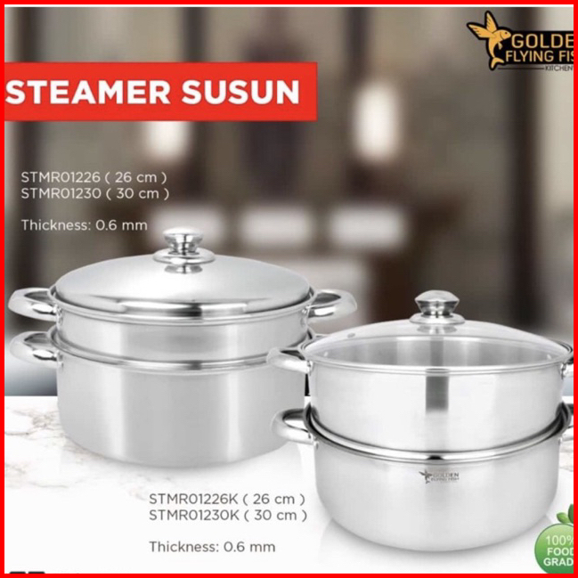 Promo Steamer Set Susun Golden Flying Fish - Stainless Steel - 30cm - Panci Kukusan Susun Tingkat 2 - Tutup Kaca Stainle