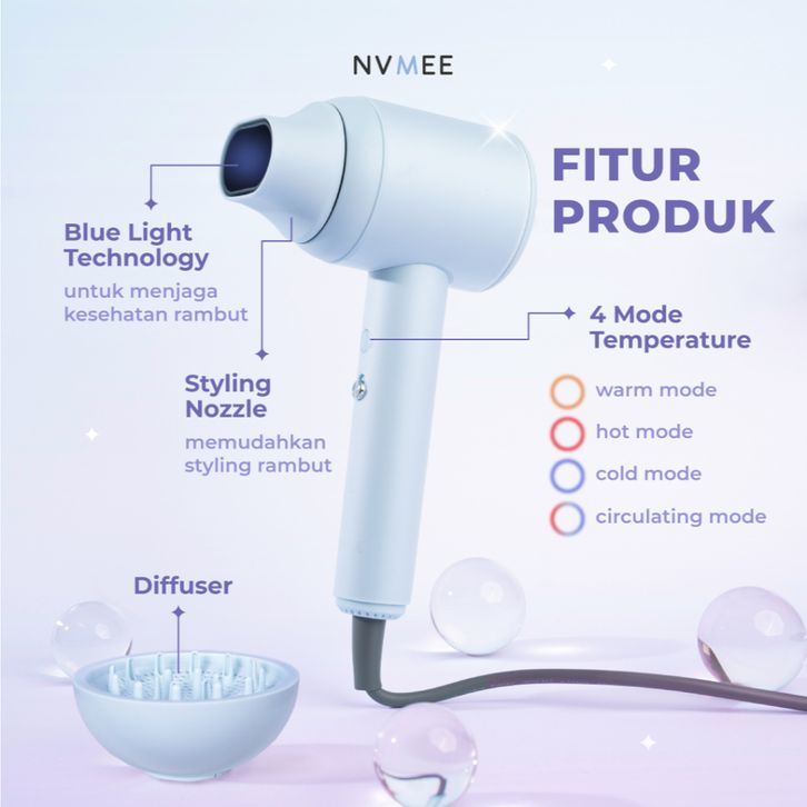 NVMEE - Luna Hair Dryer Strong Wind & Low Watt / Hair Dryer Rambut / Hair Dryer Low Watt