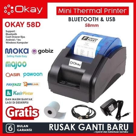 mall inline badgeOKAY 58D Printer bluetooth mini printer thermal 58MM pos kasir ppob printer termal