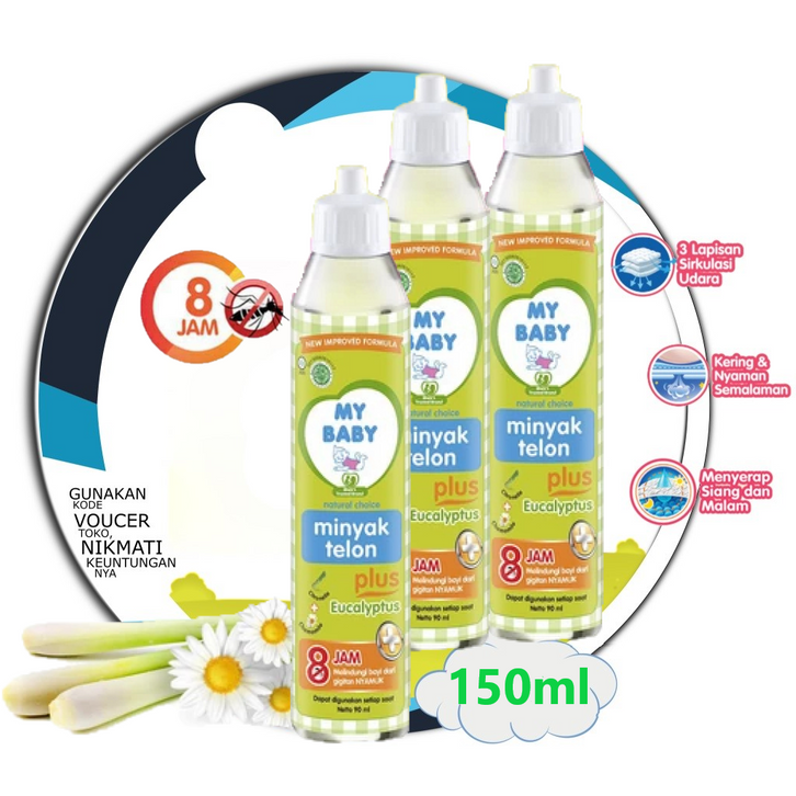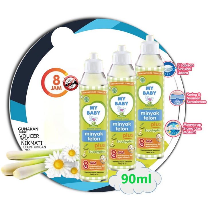 x 3 Pcs MY BABY Minyak Telon Plus [60mL 90 mL 150mL] - Minyak Bayi Anti Nyamuk 8 Jam x 3 Botol