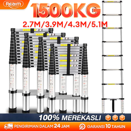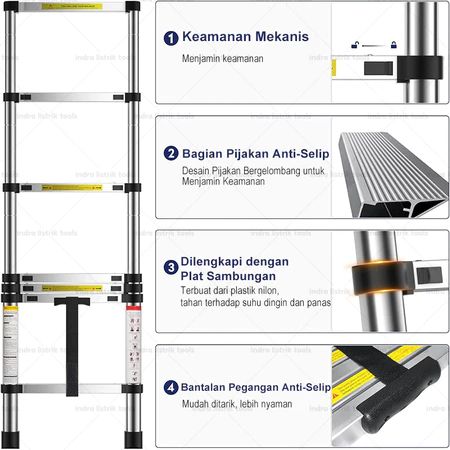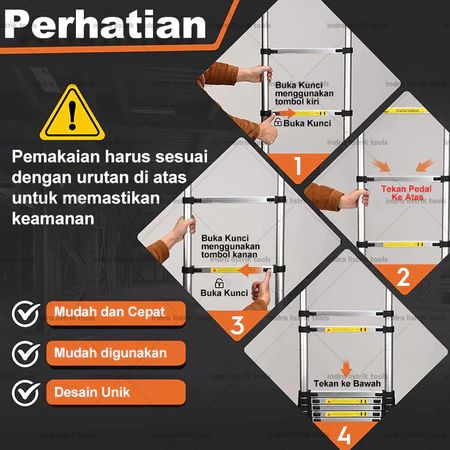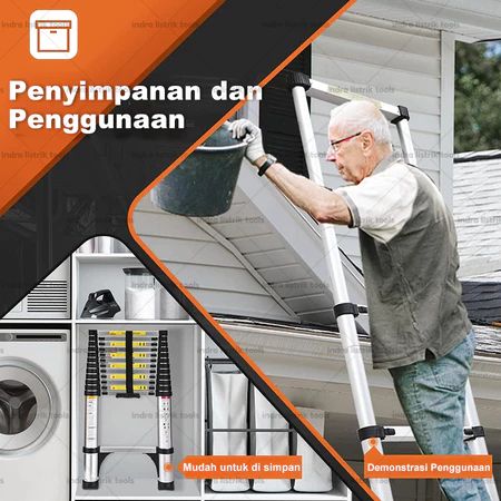 Tangga Lipat Alumunium Teleskopik 6 Meter Kualitas Tinggi Kokoh Berbagai Warna Tangga Teleskopik