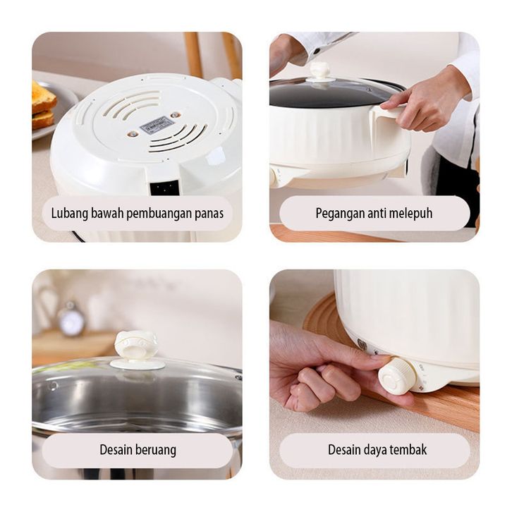 Panci Listrik Multifungsi 1.8L Anti Lengket Elektrik Wajan Listrik-Desain Manik Beruwaang