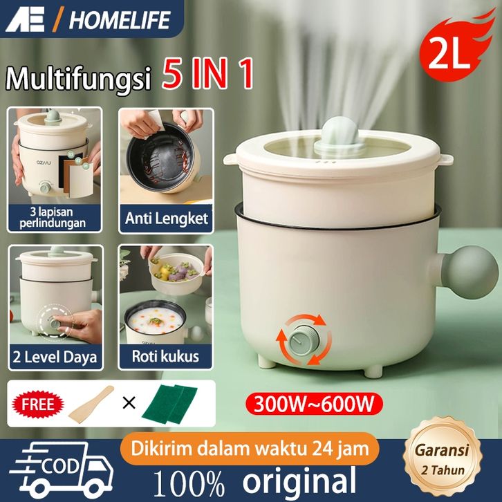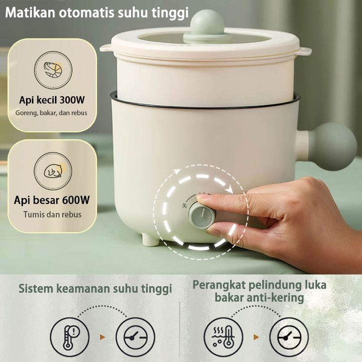 AE HOMELIFE Panci Listrik SerbaGAANa Low Watt Mini Elektrik Multifungsi 3in1 Kukusan Listrik Lapisan Keramik