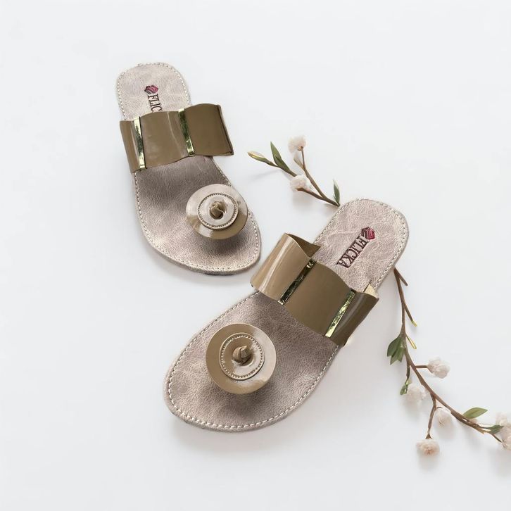 Sandal jepit Glossy Wanita Model Kancing Jamur Ala Korean Style Sandal Slop Jepit Kekinian Sol karet Anti slip