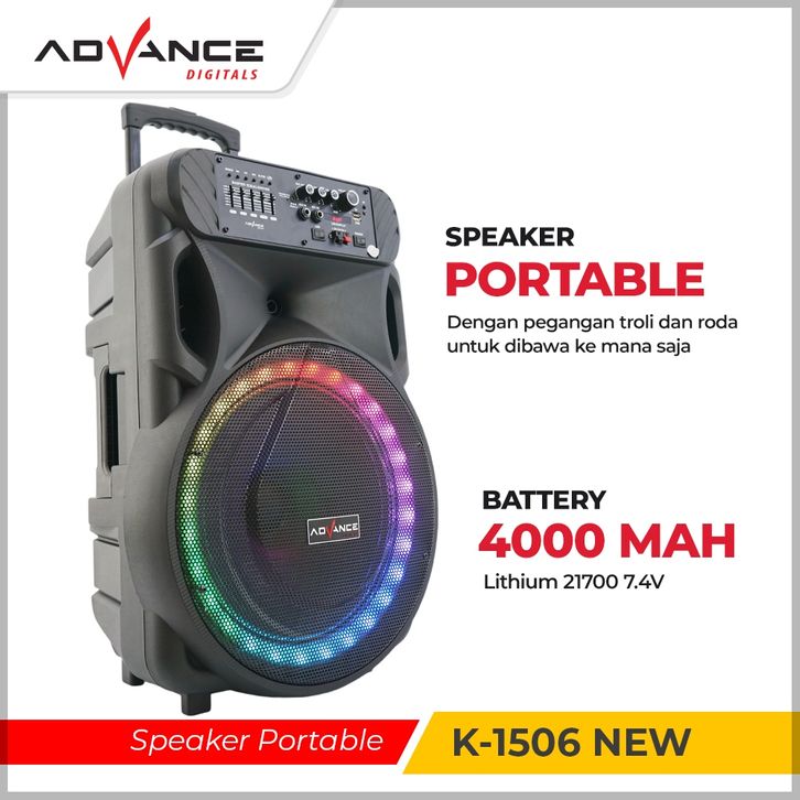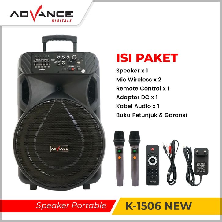 Speaker Portable Bluetooth Advance K-1506- Free Mic Wireless 2 Buah