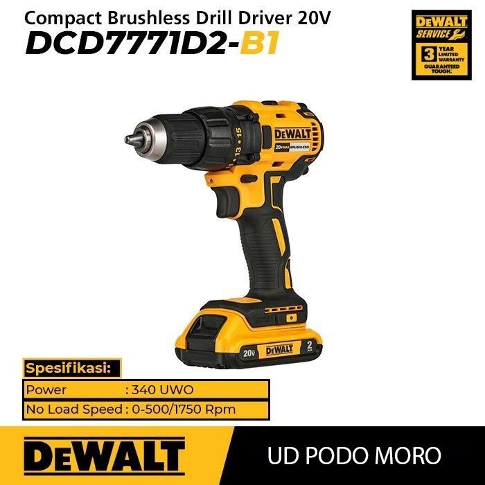 Dewalt Mesin Bor Obeng Baterai Brushles Drill Driver 20V DCD7771D2