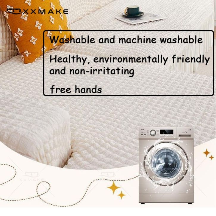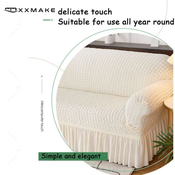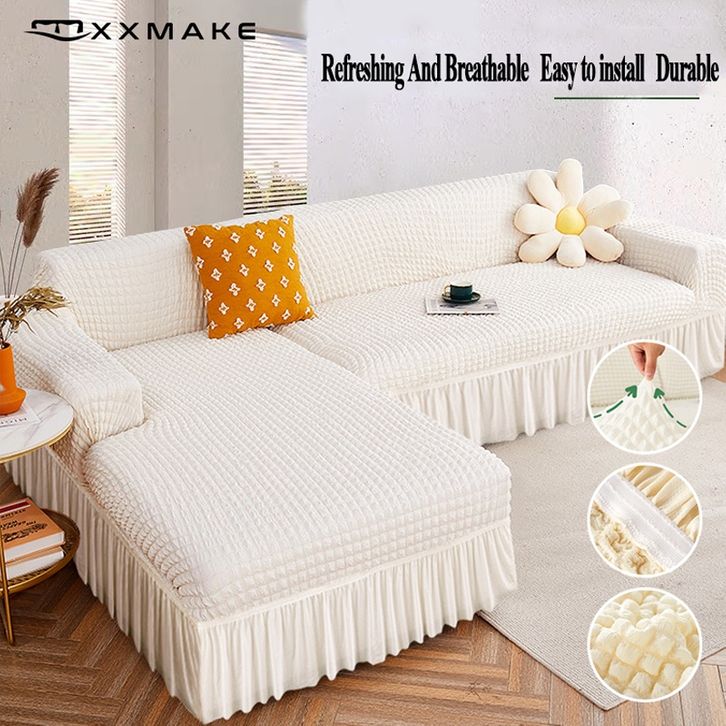 Sofa Cover L Shape With Skirt Stretch/Sarung Alas Penutup Sofa Renda Elastis/Sofa Pattern Polos