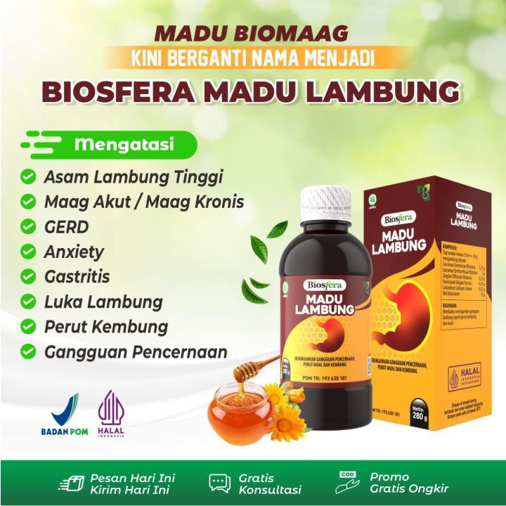 BIOSFERA MADU LAMBUNG Obat Herbal Maag, Asam lambung Tinggi, Gerd, Radang Usus, Mual Muntah Isi 280 9ram