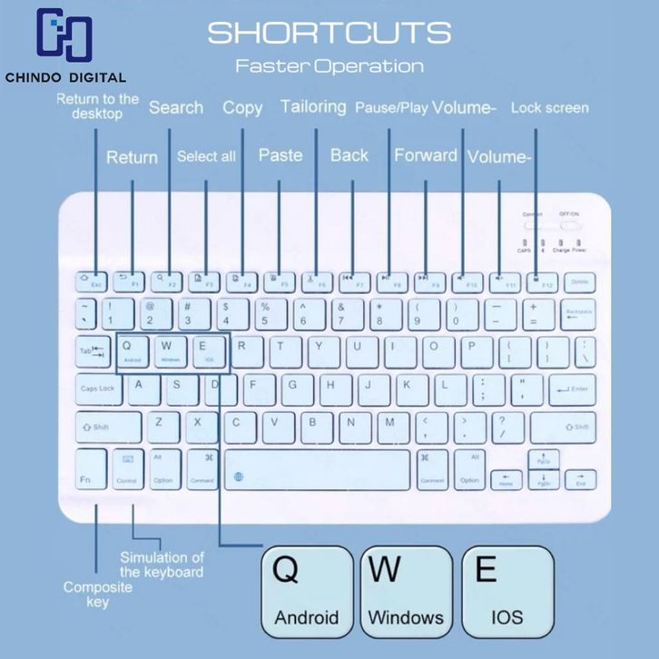 10 inch Wireless Bluetooth Keyboard Lightweight Portable Colorful