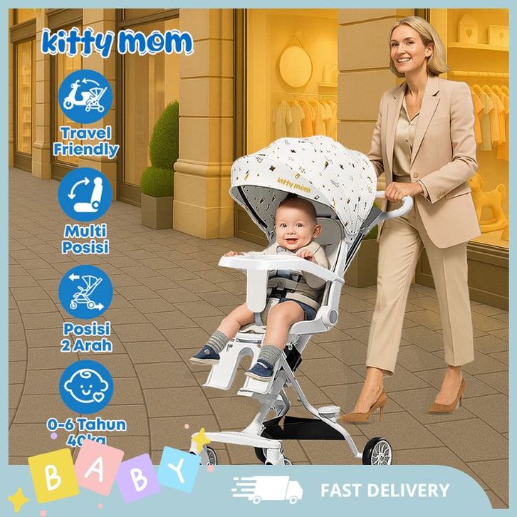 [Star] Kitty Mom Stroller Baby Travelling | Dorongan Bayi Lipat| Stroler Anak 2 Arah