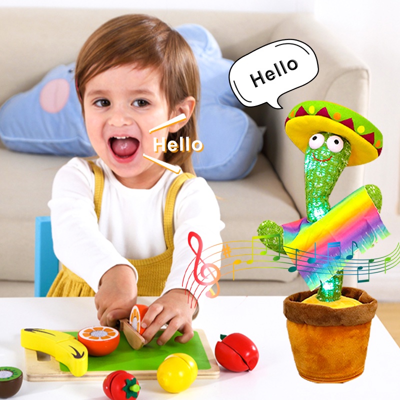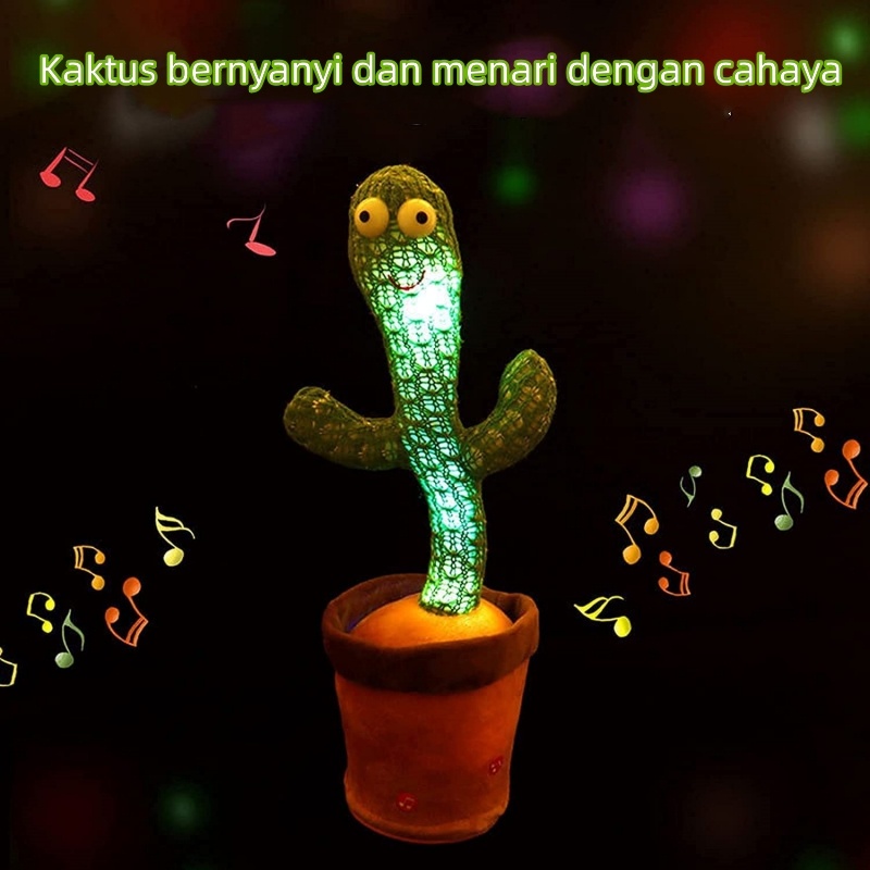 MAINAN KAKTUS BERGOYANG DAN BICARA / BONEKA KAKTUS DENGAN LAMPU LED BAWAAN / BERAYUN DAN MENARI