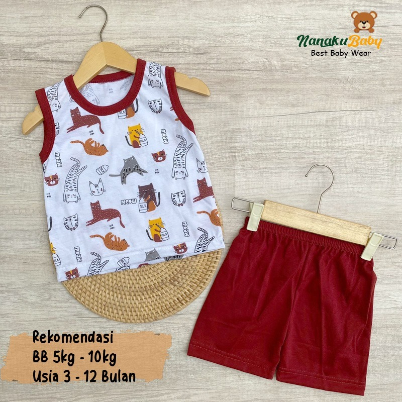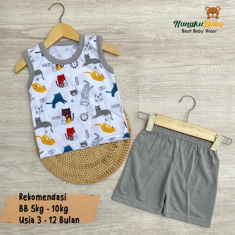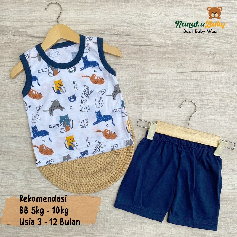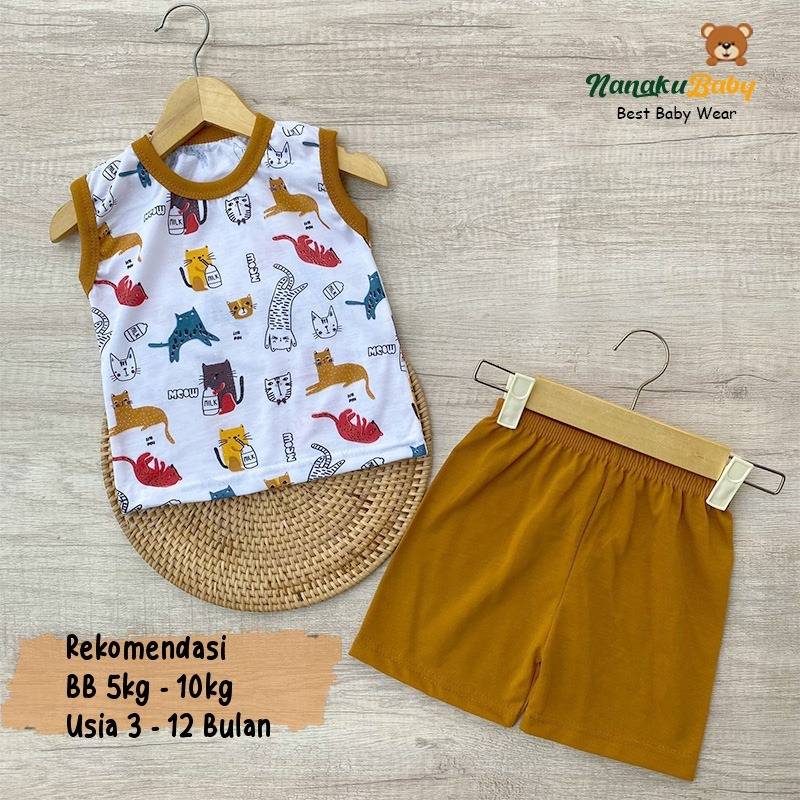 Nanaku Baby - Setelan Singlet Bayi Unsiex / Setelan Kutung Motif Meow Usia 3-12 Bulan