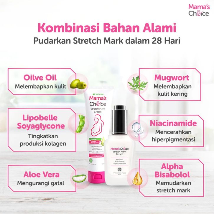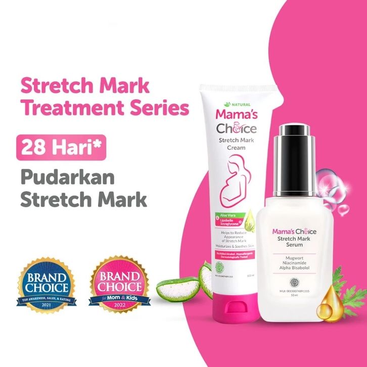 Stretch Mark Treatment Series Mama's Choice (Stretch Mark Cream + Stretch Mark Serum) Krim Strechmark Terdaftar BPOM