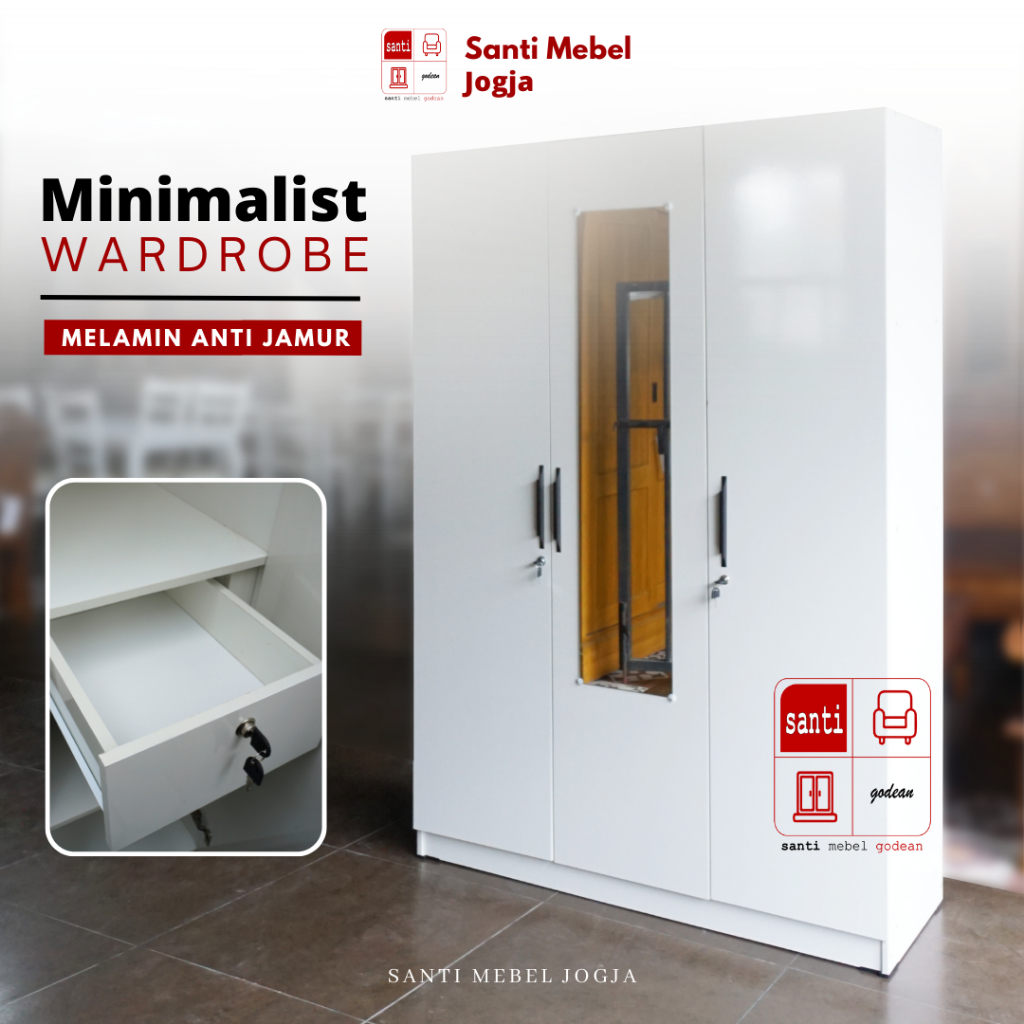 LEMARI P3 PUTIH DENVER MDF MELAMIN ANTI JAMUR