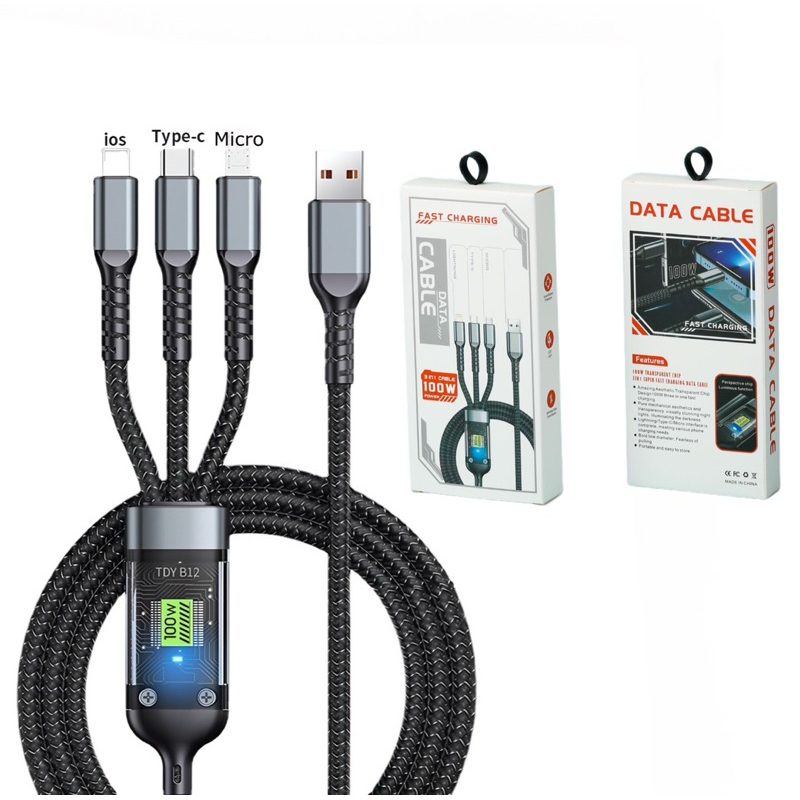 KABEL DATA CHARGER FAST CHARGING 3 IN 1 KABEL LIGHTNING MICRO USB TYPE C BLACK FOR ANDROID IOS TYPE-C