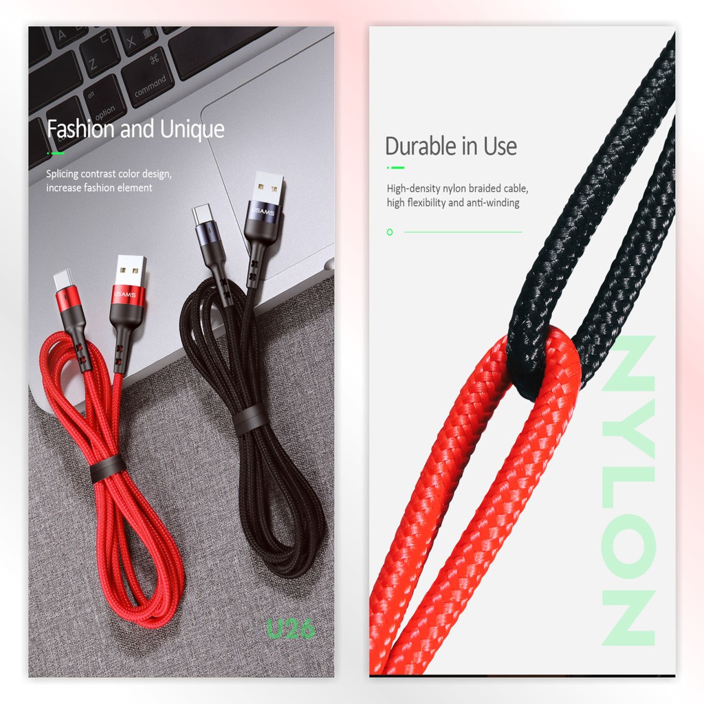 USAMS U26 KABEL DATA TYPE C 3A FAST CHARGE LED INDIKATOR