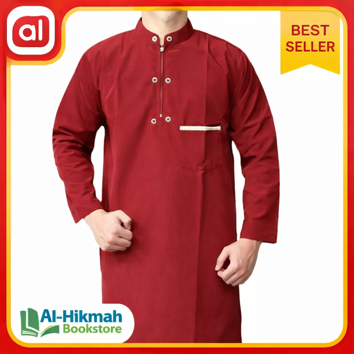 [Star] Gamis Pria Lengan Panjang Warna Maroon | Jubah Muslim Dewasa Elegan Modern | Baju Koko Gamis Pria Terbaru