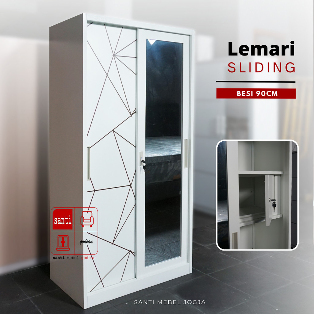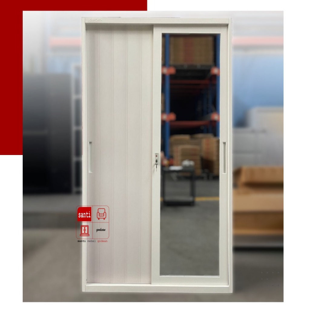 LEMARI SLIDING BESI PUTIH 90CM PIRA