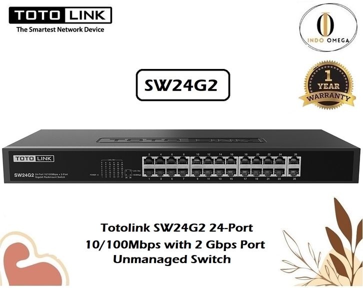 Totolink SW24G2 24-Port 10/100Mbps with 2 Port Gigabit Rackmount Switch