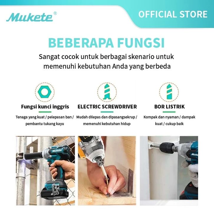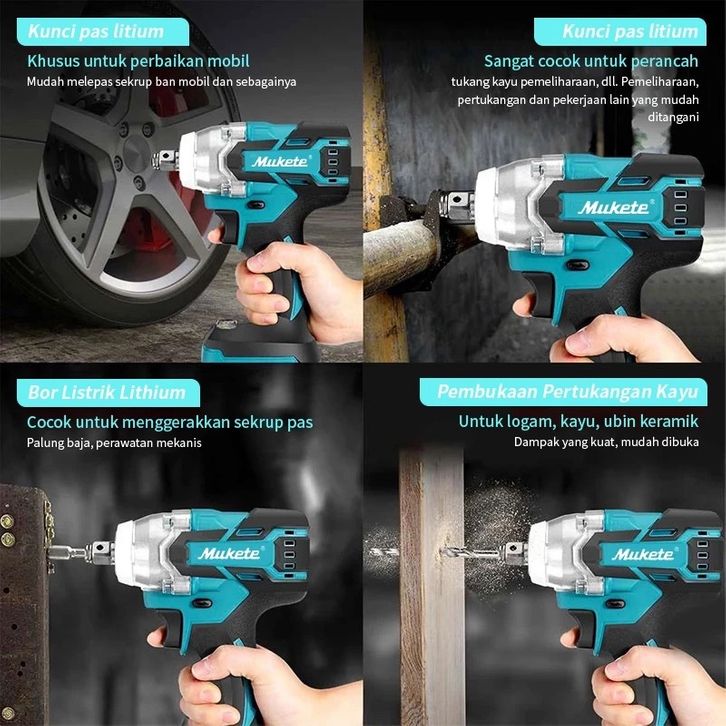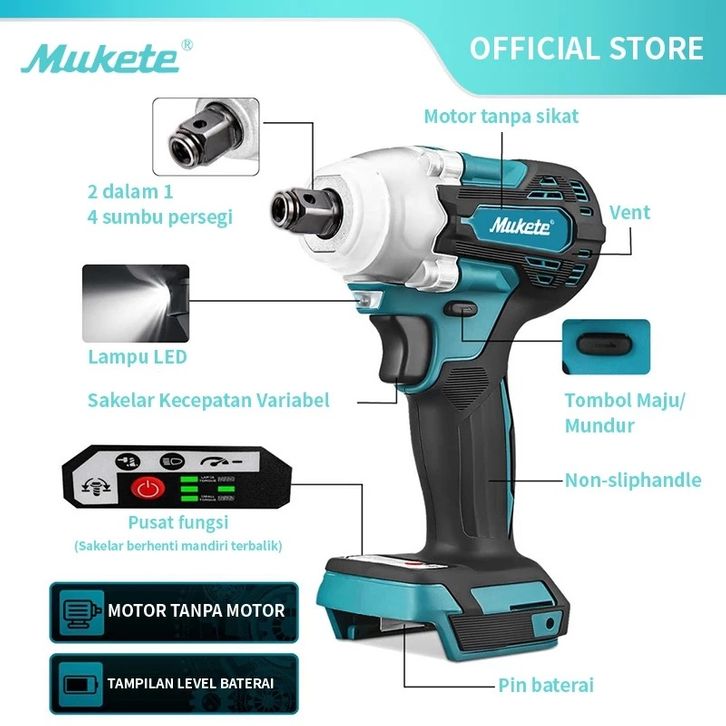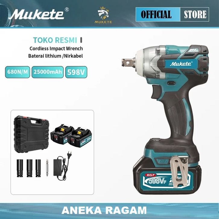 Mukete 298V/398V/598V impact wrench impek baterai mesin impact impact cordless Cordless Impact Wrench Brushless 398V 680