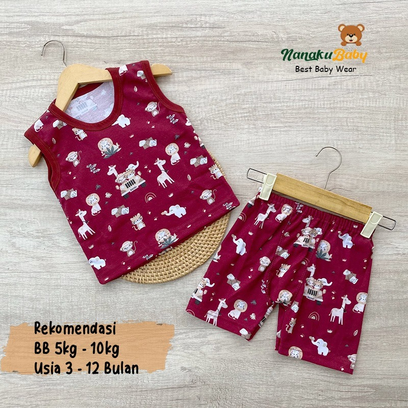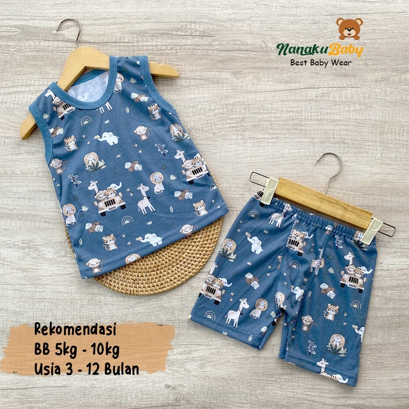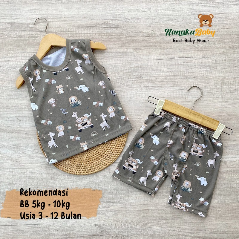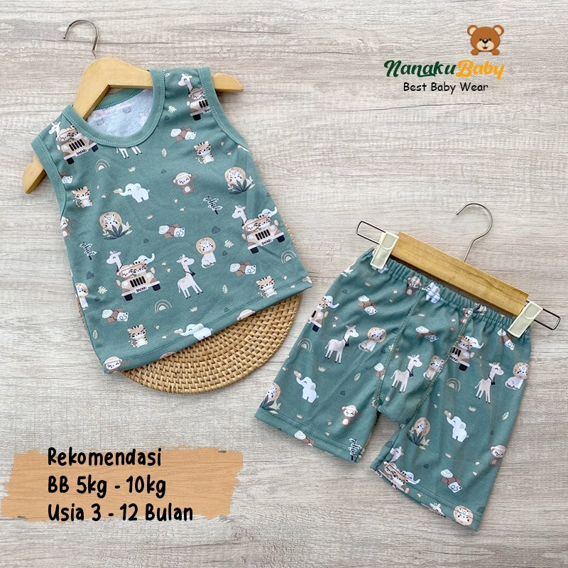 Setelan Singlet Bayi Full Printing Safari Set Kutung Celana Diapers Usia 3-12 Bulan