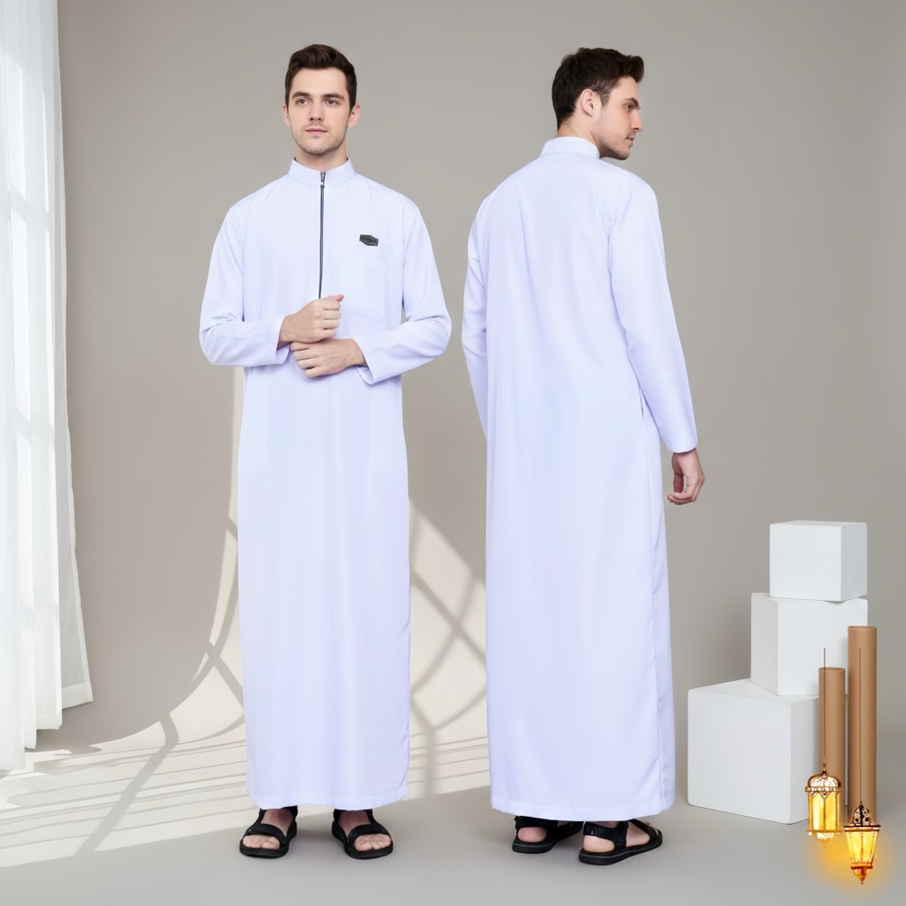 [Mall] Jubah Muslim Pria Premium Putih Polos Modern Thobe Arab Elegan Baju Lebaran Pria Dewasa Dan Banyak Pilihan Warna