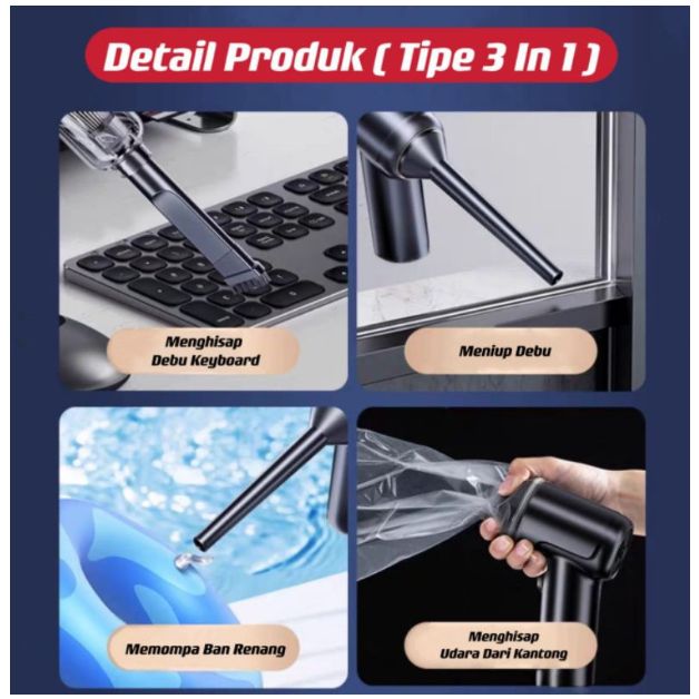 VACUM CLEANER MOBIL PORTABLE 3in1 Mini USB Charge Alat Penghisap Debu
