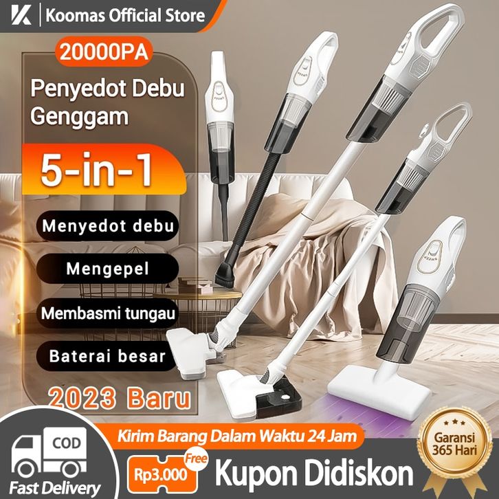 Koomas Vacum Cleaner 5 IN 1 Penyedot Debu Portable Cordless Multifungsi / Alat Pel Lantai / Sapu Lantai Otomatis / Hapu