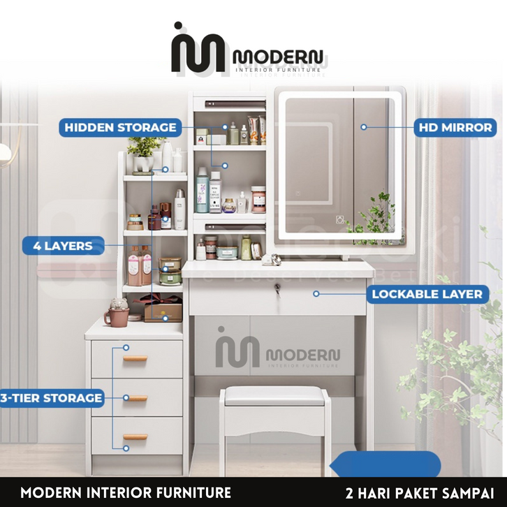 Best Seller Meja Rias Aesthetic/Meja Rias Led/Meja Rias Lampu Meja Rias Minimalis/Meja Rias Sliding Meja Make up