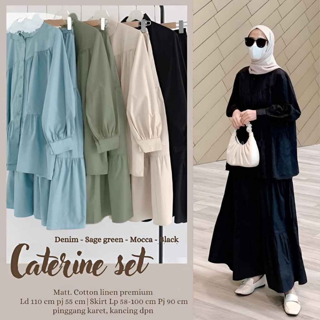 [Mall] Setelan Muslim Wanita Caterine Set Premium Cotton Linen – Atasan Rok Syari Jumbo All Size – Sage Green Mocca