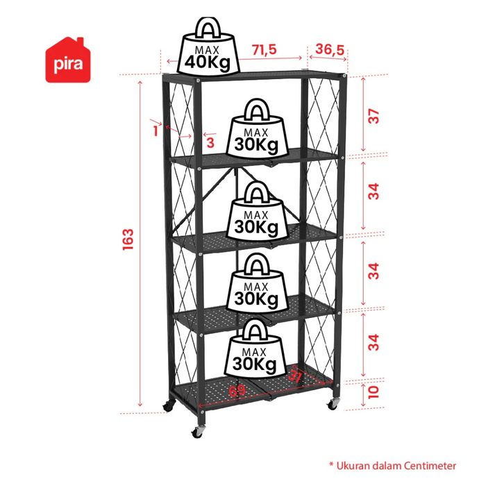 PIRA - FLATO MSU Rak Dapur Lipat Serbaguna / Rak Besi 3 4 5 Susun