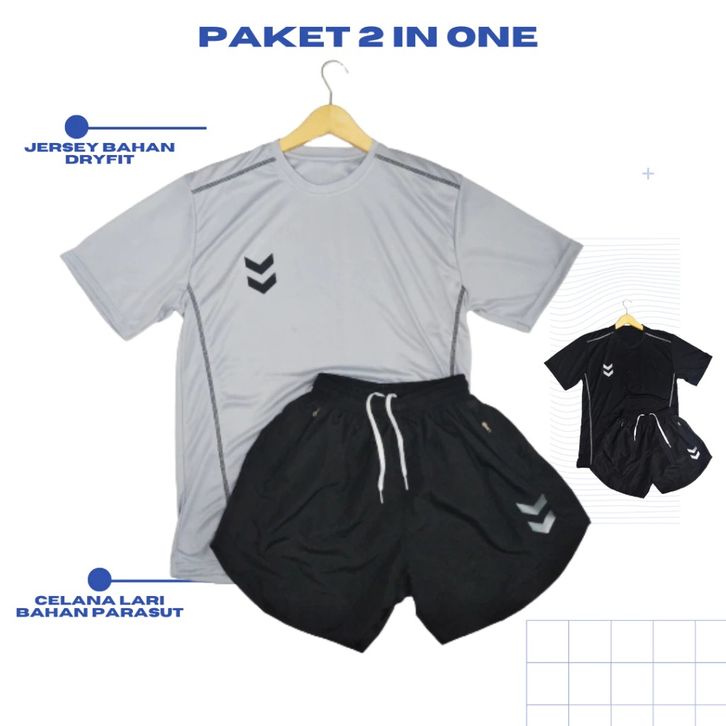 PAKET 2 IN ONE SETELAN JERSEY OLAHRAGA CELANA PARASUT LARI GYM BINSIK JERSEY BOLA KAOS FUTSAL PRIA DEWASA